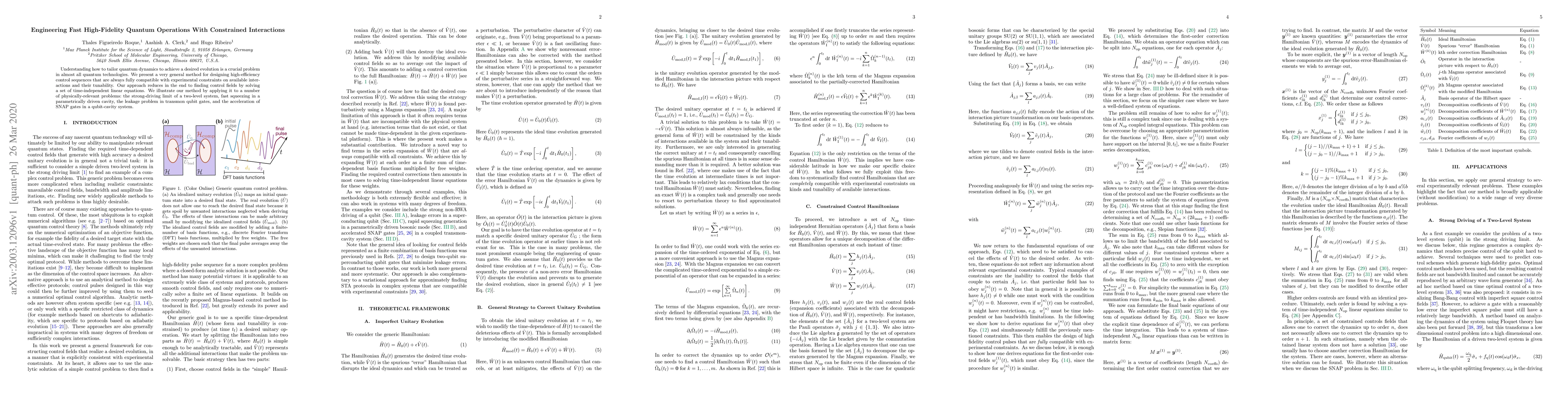 Understanding how to tailor quantum dynamics to achieve a desired evolution is a crucial problem in almost all quantum technologies. We present a very general method for designing high-efficiency control sequences that are always fully compatible with experimental constraints on available interactions and their tunability. Our approach reduces in the end to finding control fields by solving a set of time-independent linear equations. We illustrate our method by applying it to a number of physically-relevant problems: the strong-driving limit of a two-level system, fast squeezing in a parametrically driven cavity, the leakage problem in transmon qubit gates, and the acceleration of SNAP gates in a qubit-cavity system.