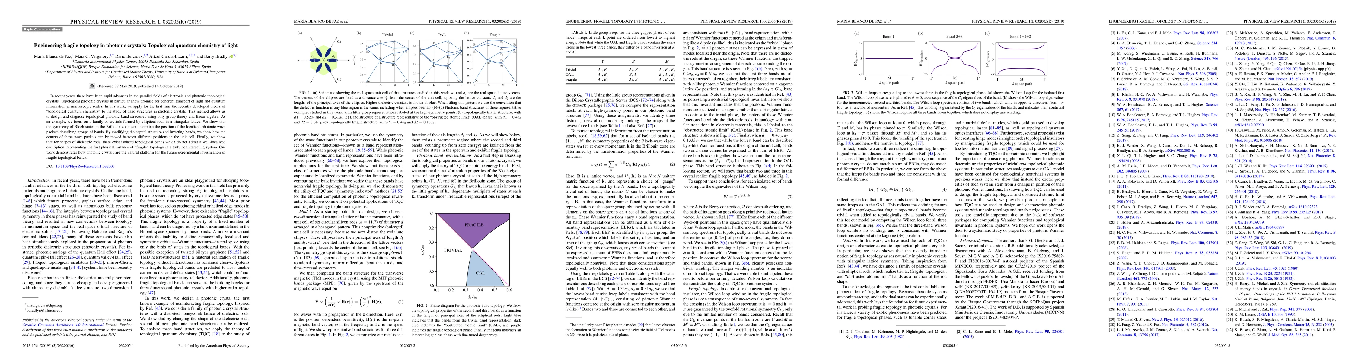 This research applies topological quantum chemistry to photonic crystals, showing how group theory and linear algebra can design their band structures. It demonstrates "fragile" topology in dielectric rods, creating isolated bands that defy localized description, and suggests photonic crystals as ideal platforms for future studies on such topological phenomena.