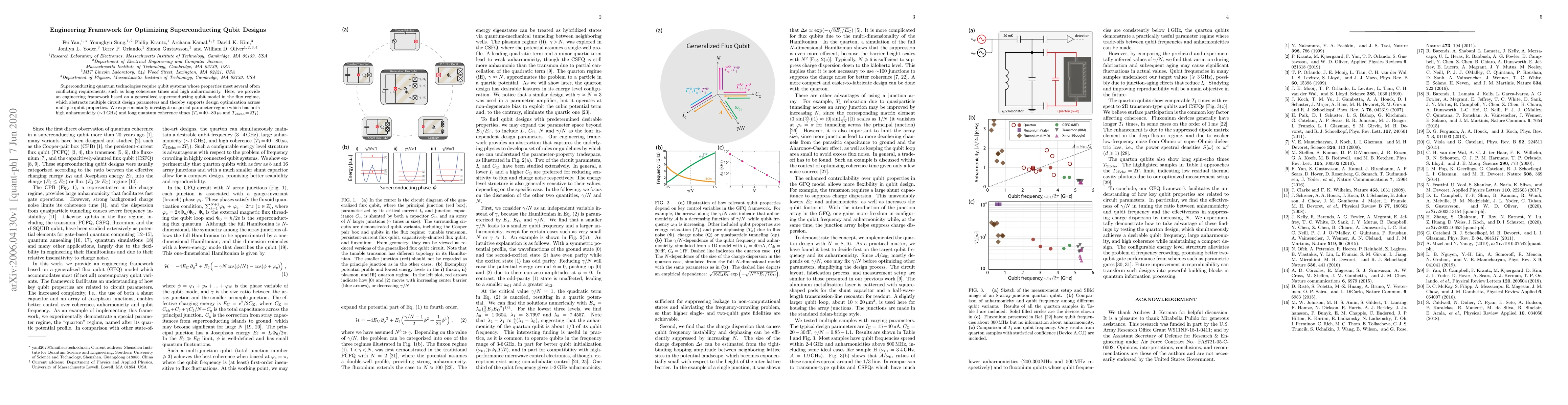 This paper presents an engineering framework for optimizing superconducting qubit designs, focusing on balancing long coherence times and high anharmonicity. The framework abstracts multiple circuit design parameters to support optimization across various qubit properties, and experimental results demonstrate a parameter regime with high anharmonicity and long quantum coherence times.