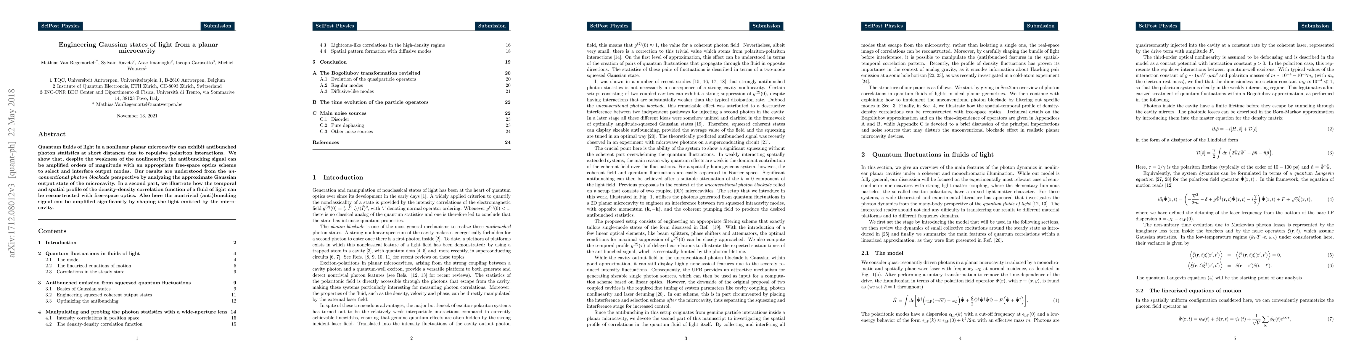 This paper demonstrates how to amplify antibunching signals in quantum fluids of light within a nonlinear planar microcavity using free-space optics to select and interfere output modes, revealing the Gaussian nature of the resultant states. It also shows how the temporal and spatial profiles of the density-density correlation function can be reconstructed and amplified through similar optical techniques.