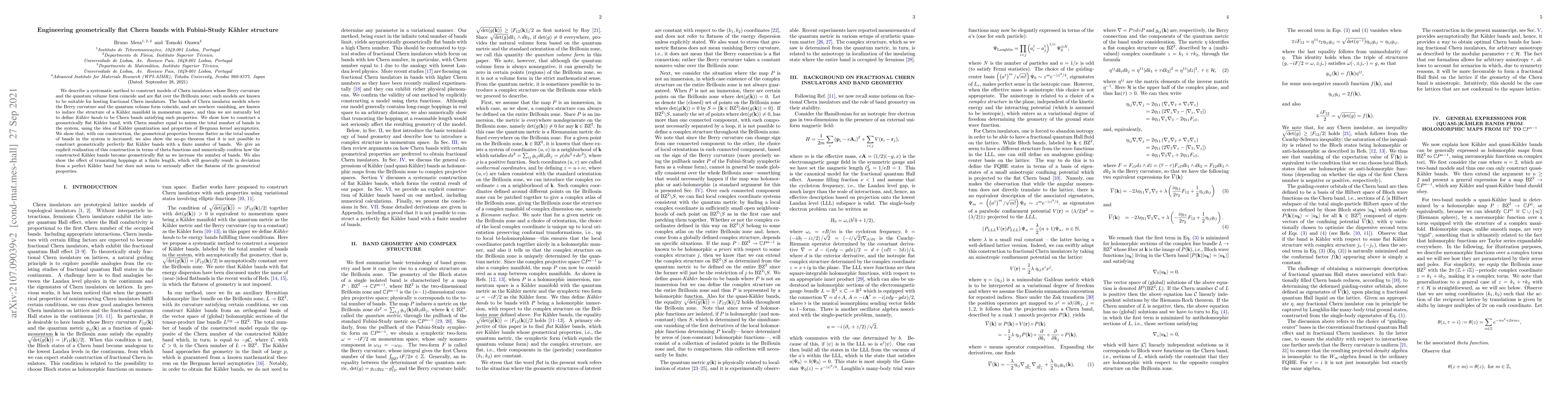 We describe a systematic method to construct models of Chern insulators whose Berry curvature and the quantum volume form coincide and are flat over the Brillouin zone; such models are known to be suitable for hosting fractional Chern insulators. The bands of Chern insulator models where the Berry curvature and the quantum volume form coincide, and are nowhere vanishing, are known to induce the structure of a K\"ahler manifold in momentum space, and thus we are naturally led to define K\"ahler bands to be Chern bands satisfying such properties. We show how to construct a geometrically flat K\"ahler band, with Chern number equal to minus the total number of bands in the system, using the idea of K\"ahler quantization and properties of Bergman kernel asymptotics. We show that, with our construction, the geometrical properties become flatter as the total number of bands in the system is increased; we also show the no-go theorem that it is not possible to construct geometrically perfectly flat K\"ahler bands with a finite number of bands. We give an explicit realization of this construction in terms of theta functions and numerically confirm how the constructed K\"ahler bands become geometrically flat as we increase the number of bands. We also show the effect of truncating hoppings at a finite length, which will generally result in deviation from a perfect K\"ahler band but does not seem to seriously affect the flatness of the geometrical properties.