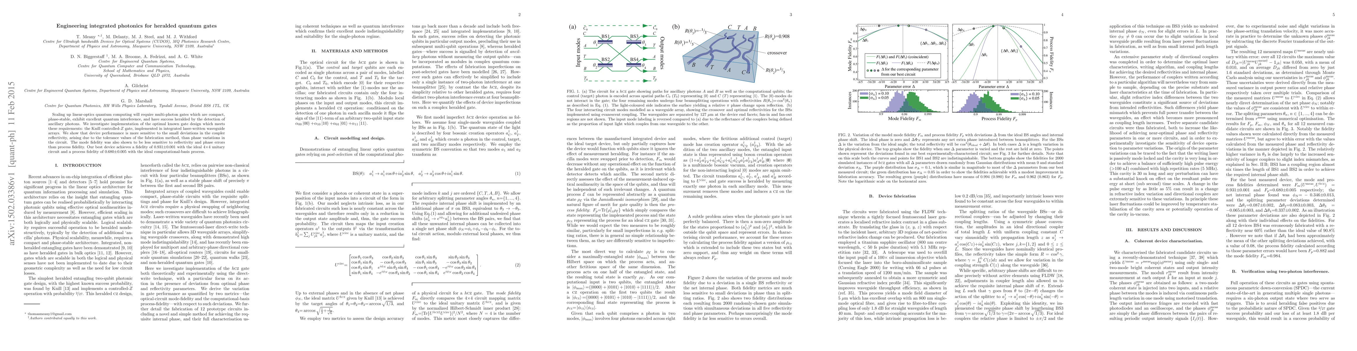 Scaling up linear-optics quantum computing will require multi-photon gates which are compact, phase-stable, exhibit excellent quantum interference, and have success heralded by the detection of ancillary photons. We investigate implementation of the optimal known gate design which meets these requirements: the Knill controlled-Z gate, implemented in integrated laser-written waveguide arrays. We show that device performance is more sensitive to the small deviations in the coupler reflectivity, arising due to the tolerance values of the fabrication method, than phase variations in the circuit. The mode fidelity was also shown to be less sensitive to reflectivity and phase errors than process fidelity. Our best device achieves a fidelity of 0.931+/-0.001 with the ideal 4x4 unitary circuit and a process fidelity of 0.680+/-0.005 with the ideal computational-basis process.