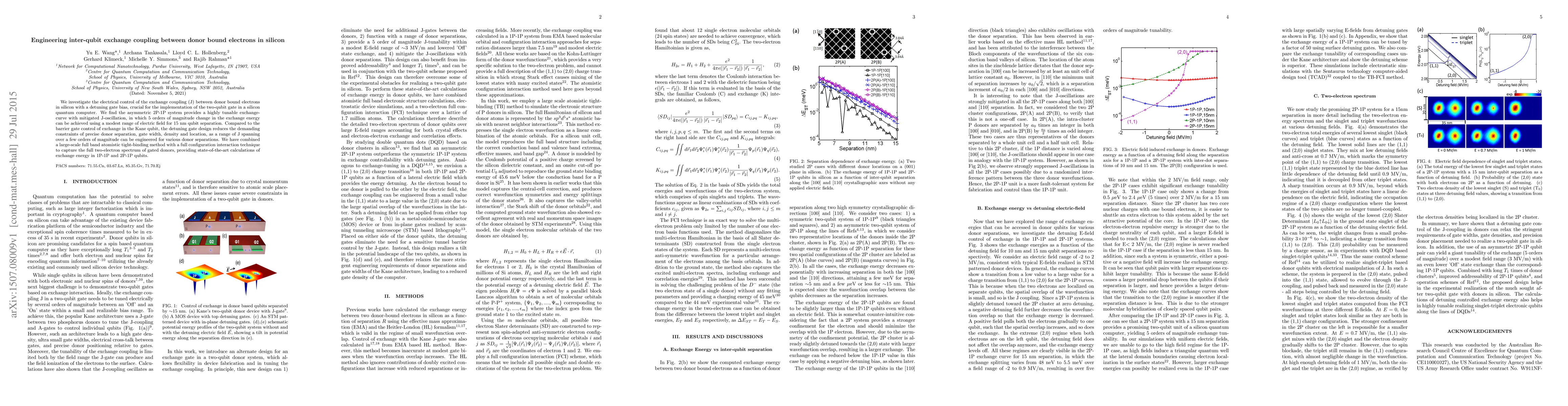 This paper explores the electrical control of inter-qubit exchange coupling between donor bound electrons in silicon, demonstrating a tunable exchange-curve using a detuning gate bias. This method simplifies the implementation of two-qubit gates in silicon quantum computers by reducing the need for precise control over donor separation and gate parameters.