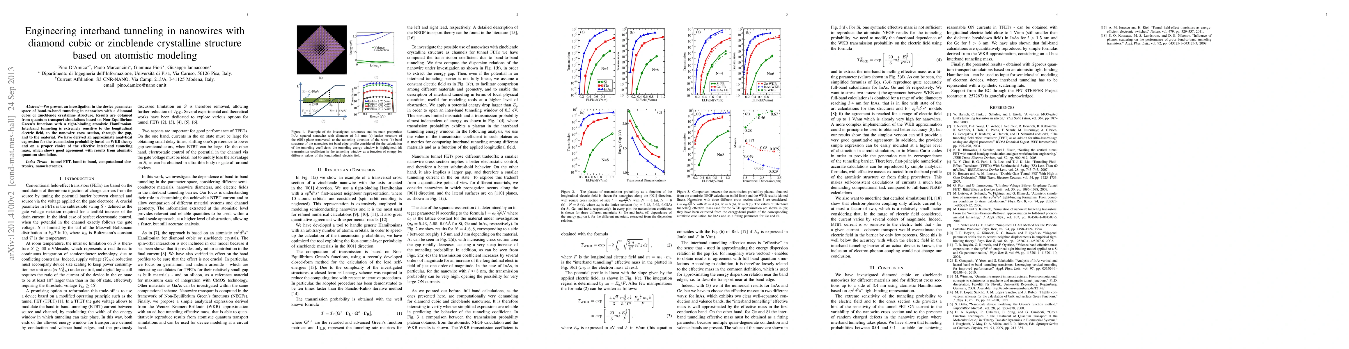 We present an investigation in the device parameter space of band-to-band tunneling in nanowires with a diamond cubic or zincblende crystalline structure. Results are obtained from quantum transport simulations based on Non-Equilibrium Green's functions with a tight-binding atomistic Hamiltonian. Interband tunneling is extremely sensitive to the longitudinal electric field, to the nanowire cross section, through the gap, and to the material. We have derived an approximate analytical expression for the transmission probability based on WKB theory and on a proper choice of the effective interband tunneling mass, which shows good agreement with results from atomistic quantum simulation.