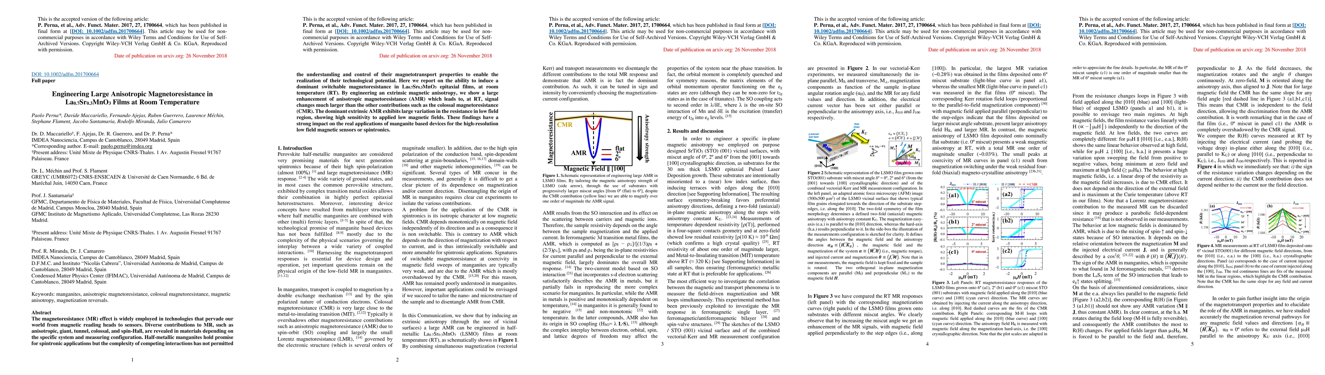 This paper reports on the engineering of large anisotropic magnetoresistance in La0.7Sr0.3MnO3 epitaxial films at room temperature, achieved through extrinsic magnetic anisotropy. The study demonstrates significant enhancements in anisotropic magnetoresistance, surpassing other contributions like colossal magnetoresistance, with high sensitivity to low magnetic fields, promising advancements in spintronics and high-resolution magnetic sensors.