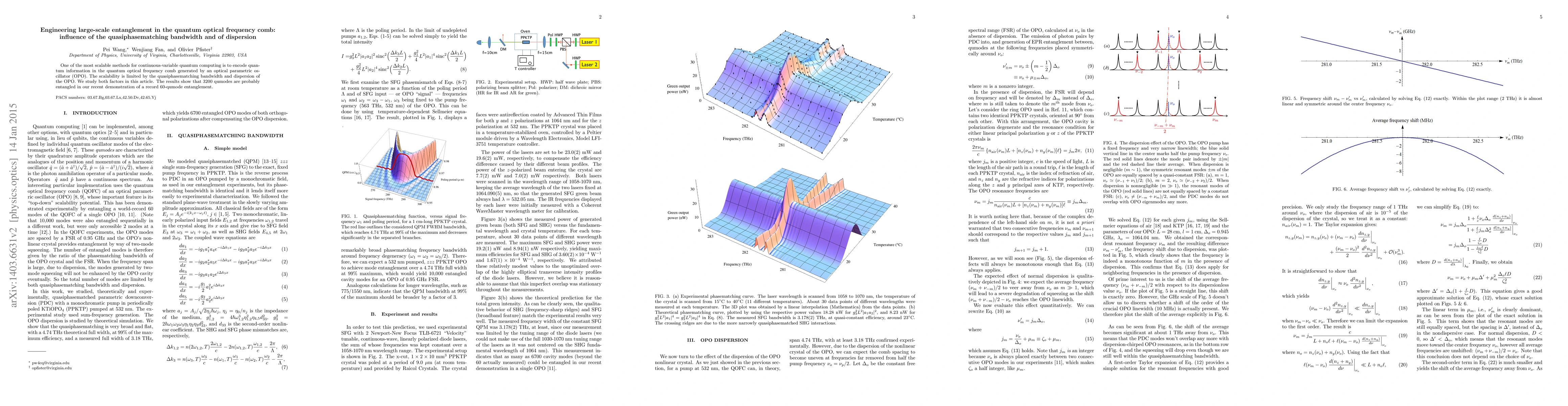 One of the most scalable methods for continuous-variable quantum computing is to encode quantum information in the quantum optical frequency comb generated by an optical parametric oscillator (OPO). The scalability is limited by the quasiphasematching bandwidth and dispersion of the OPO. We study both factors in this article. The results show that 3200 qumodes are probably entangled in our recent demonstration of a record 60-qumode entanglement.