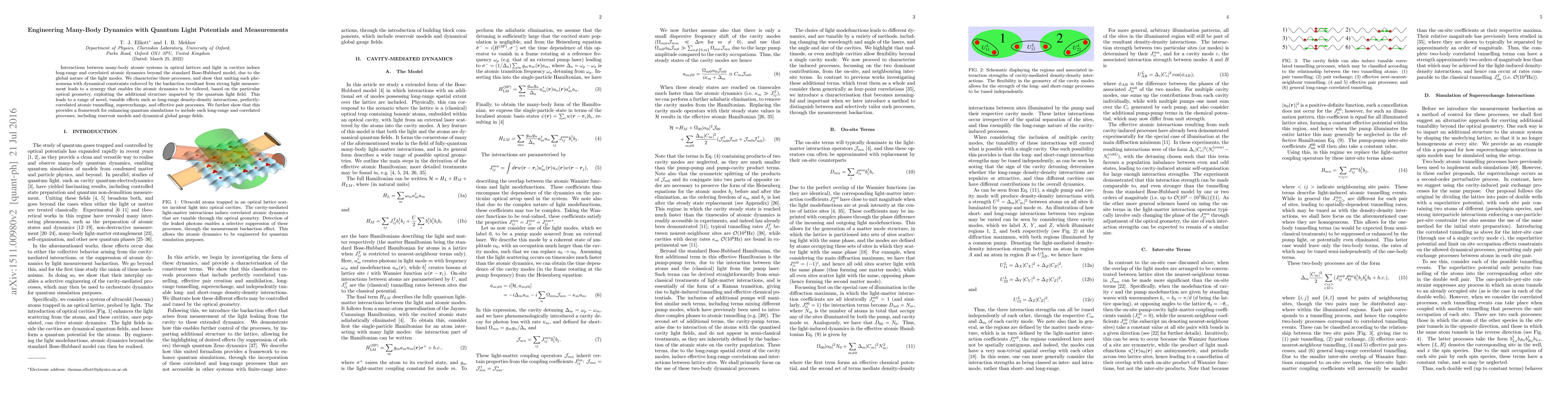 Interactions between many-body atomic systems in optical lattices and light in cavities induce long-range and correlated atomic dynamics beyond the standard Bose-Hubbard model, due to the global nature of the light modes. We characterise these processes, and show that uniting such phenomena with dynamical constraints enforced by the backaction resultant from strong light measurement leads to a synergy that enables the atomic dynamics to be tailored, based on the particular optical geometry, exploiting the additional structure imparted by the quantum light field. This leads to a range of tunable effects such as long-range density-density interactions, perfectly correlated atomic tunnelling, superexchange, and effective pair processes. We further show that this provides a framework for enhancing quantum simulations to include such long-range and correlated processes, including reservoir models and dynamical global gauge fields.