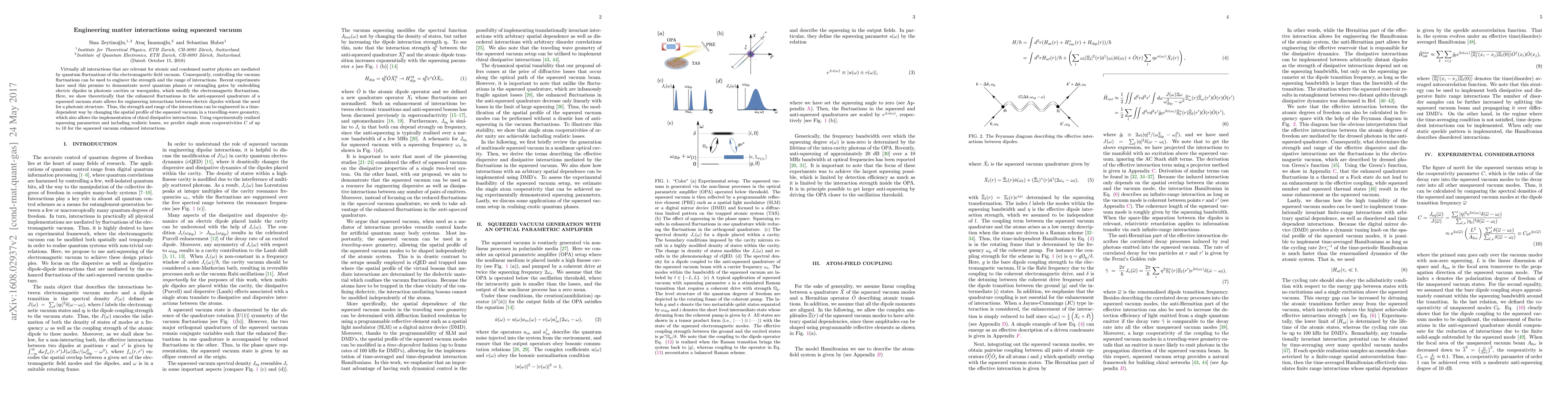 This paper theoretically demonstrates that enhanced fluctuations in the anti-squeezed quadrature of a squeezed vacuum can engineer interactions between electric dipoles without photonic structures, allowing for time-dependent control over interaction strength and range. Predictions include single atom cooperativities up to 10 using realistic squeezing parameters and losses.