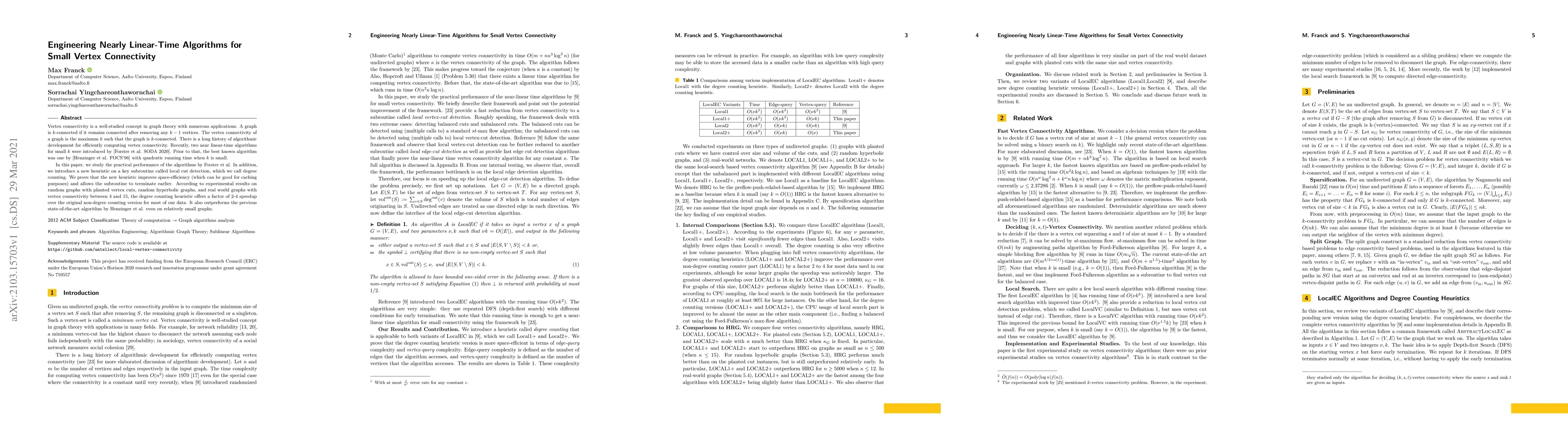 Researchers developed a new heuristic for computing vertex connectivity in graphs, which offers a 2-4 speedup over existing algorithms and outperforms previous state-of-the-art methods on small to medium-sized graphs.