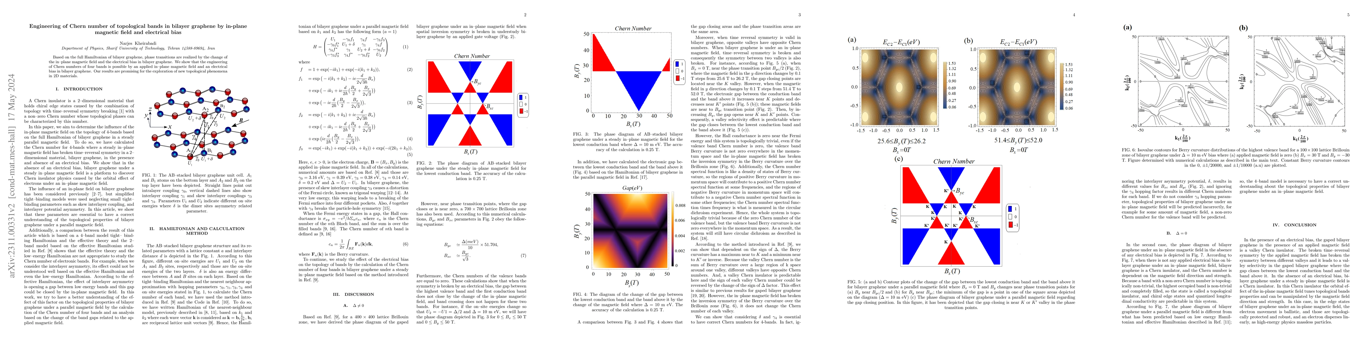 Summary: The study demonstrates how the Chern numbers of four bands in bilayer graphene can be engineered by manipulating an in-plane magnetic field and electrical bias, paving the way for novel topological phenomena in two-dimensional materials. This method offers promising avenues for exploring new topological states.