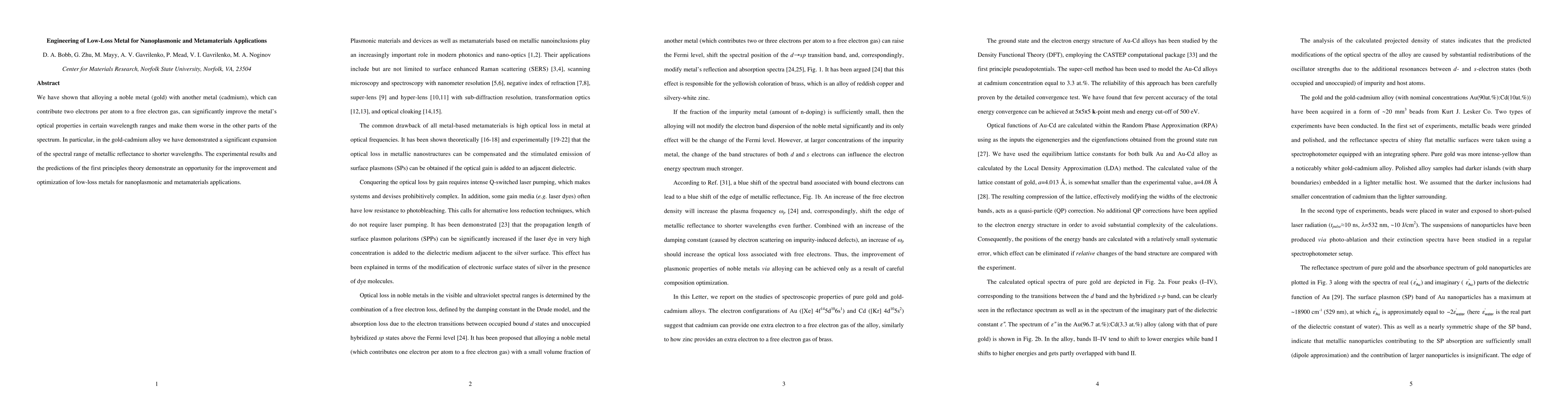 We have shown that alloying a noble metal (gold) with another metal (cadmium), which can contribute two electrons per atom to a free electron gas, can significantly improve the metals optical properties in certain wavelength ranges and make them worse in the other parts of the spectrum. In particular, in the gold-cadmium alloy we have demonstrated a significant expansion of the spectral range of metallic reflectance to shorter wavelengths. The experimental results and the predictions of the first principles theory demonstrate an opportunity for the improvement and optimization of low-loss metals for nanoplasmonic and metamaterials applications.