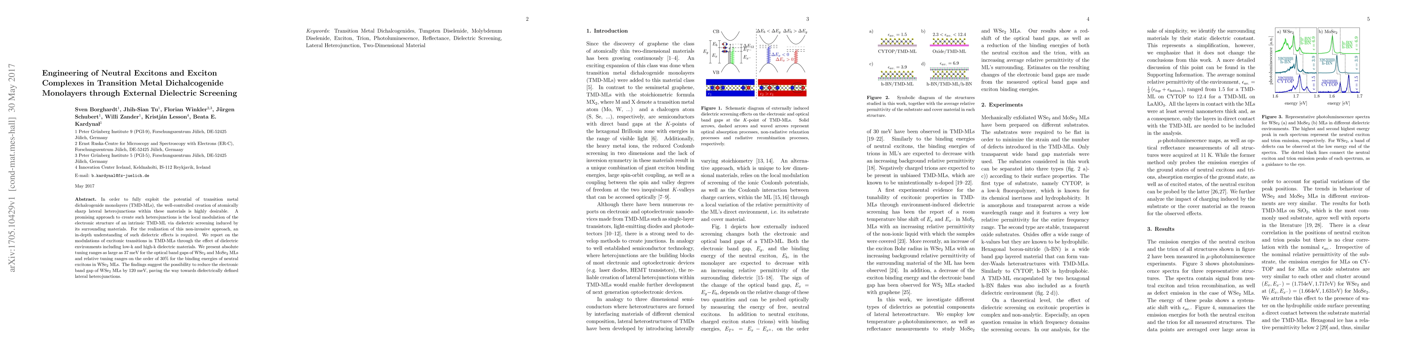 This research demonstrates the control of excitons in transition metal dichalcogenide monolayers (TMD-MLs) using dielectric screening from surrounding materials, achieving significant tuning of optical band gaps and exciton binding energies, potentially enabling the creation of atomically sharp lateral heterojunctions.