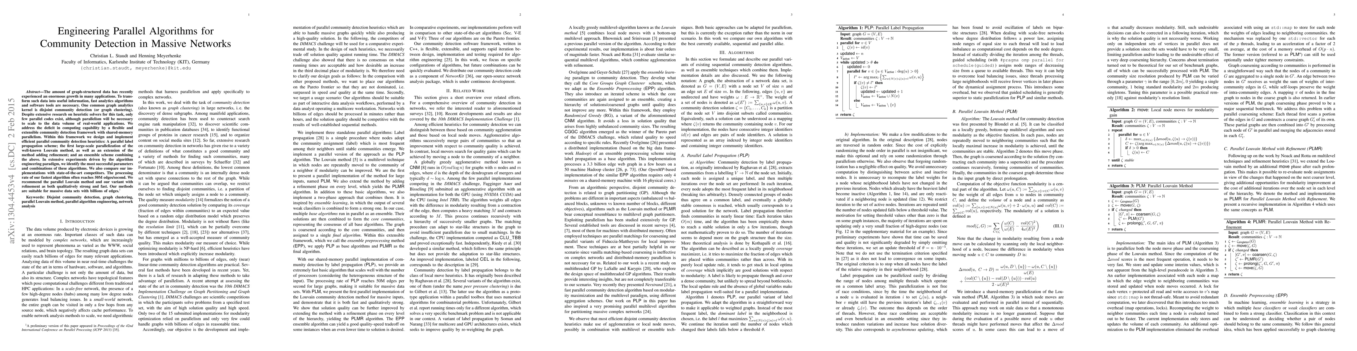 This paper presents a flexible and extensible framework for parallel community detection in massive networks, implementing efficient parallel algorithms including a parallel label propagation scheme, a large-scale parallel Louvain method, and an ensemble scheme. The fastest algorithm achieves up to 50M edges/second, making it suitable for large datasets.