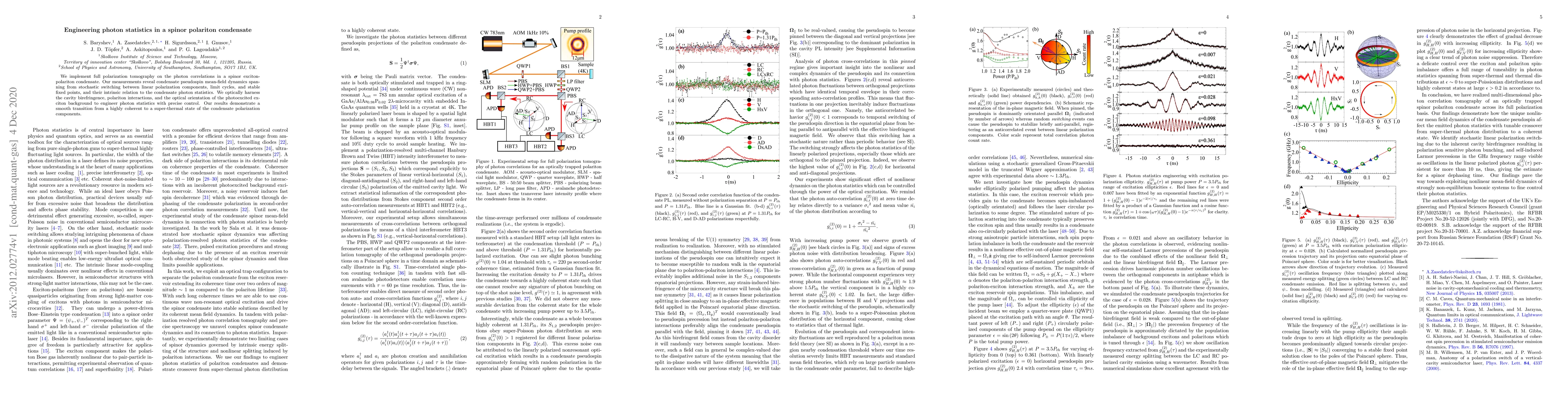 This paper details the engineering of photon statistics in a spinor polariton condensate through polarization tomography, revealing complex pseudospin dynamics and demonstrating control over the transition from coherent to super-thermal states via optical manipulation of cavity birefringence and exciton interactions.