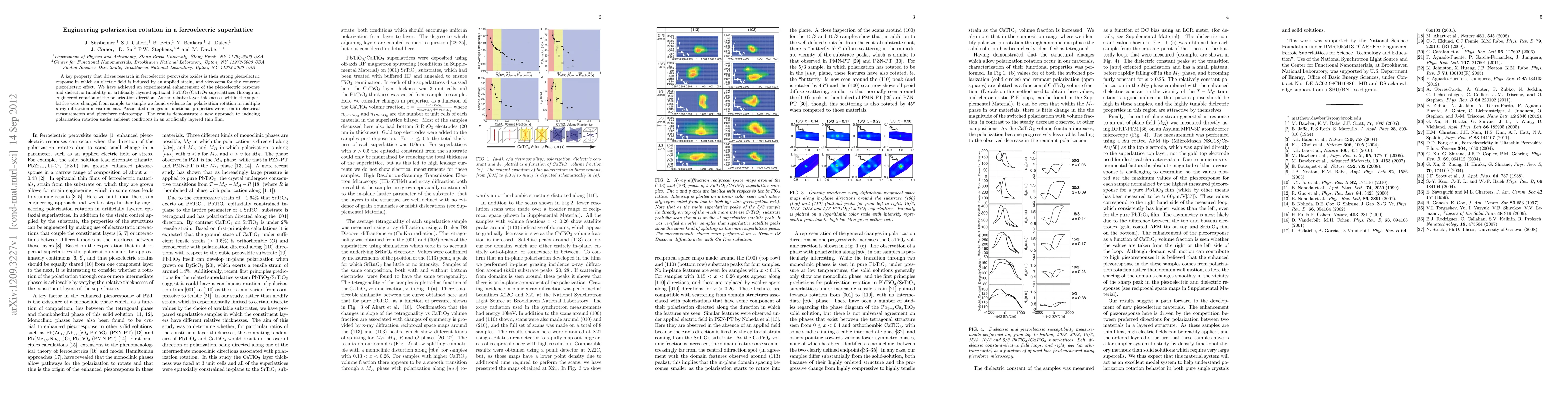 This paper reports on the engineered rotation of polarization in PbTiO$_{3}$/CaTiO$_{3}$ superlattices, achieving enhanced piezoelectric response and dielectric tunability. The study demonstrates polarization rotation through changes in layer thickness, evidenced by x-ray diffraction and confirmed by electrical measurements and piezoforce microscopy.