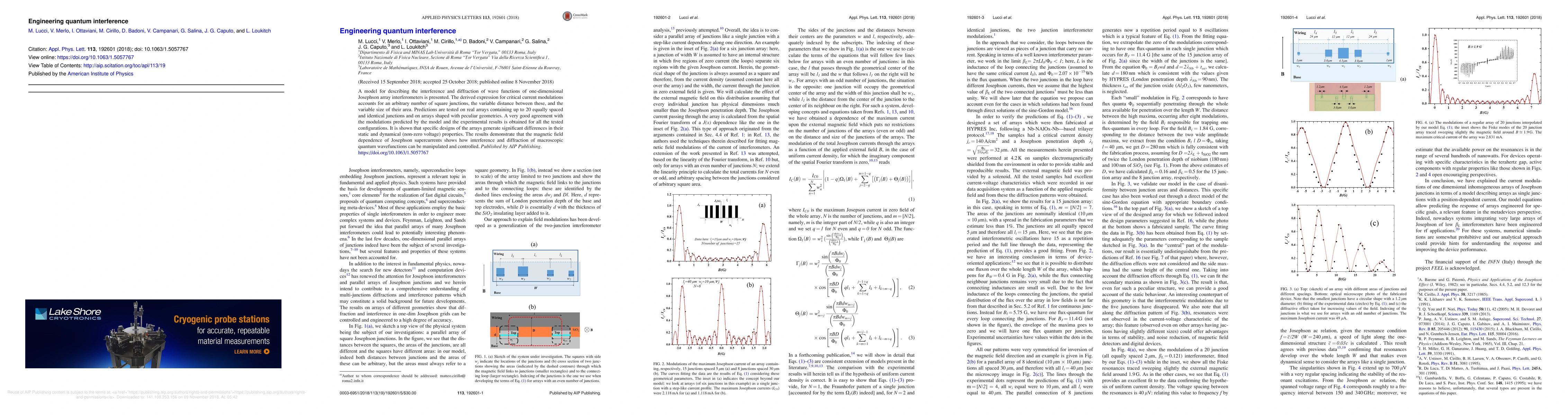 Researchers developed a model to describe interference in one-dimensional Josephson array interferometers, achieving good agreement with experimental results, and found specific designs can manipulate static and dynamic properties of the arrays.