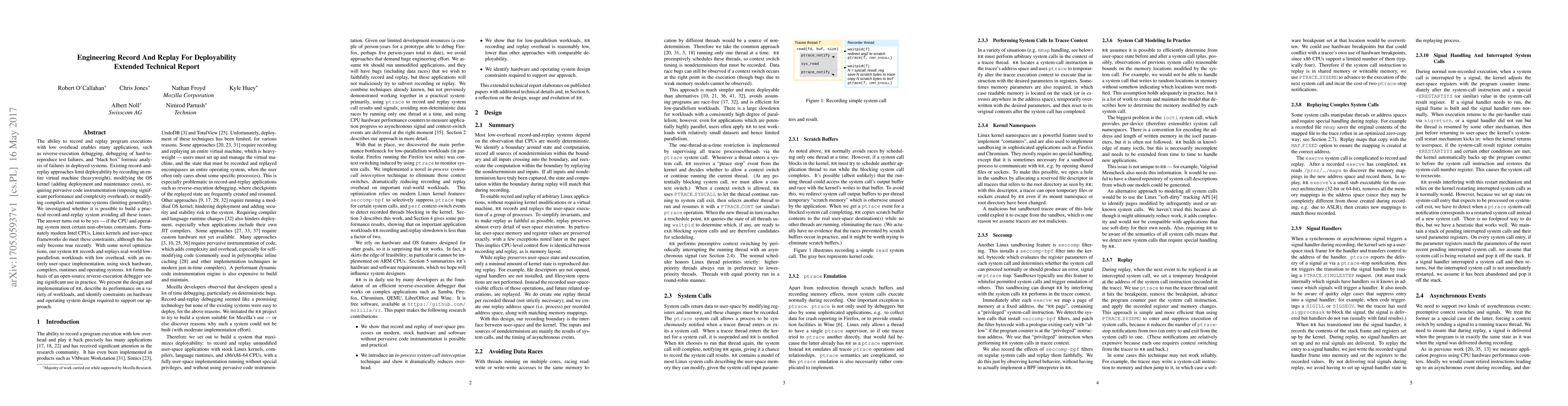 This paper presents 'rr', a low-overhead, user-space record-and-replay system for debugging and forensic analysis, which avoids heavyweight VMs, kernel modifications, and extensive code instrumentation. The system leverages modern Intel CPUs and Linux kernels to meet its performance and deployability requirements.