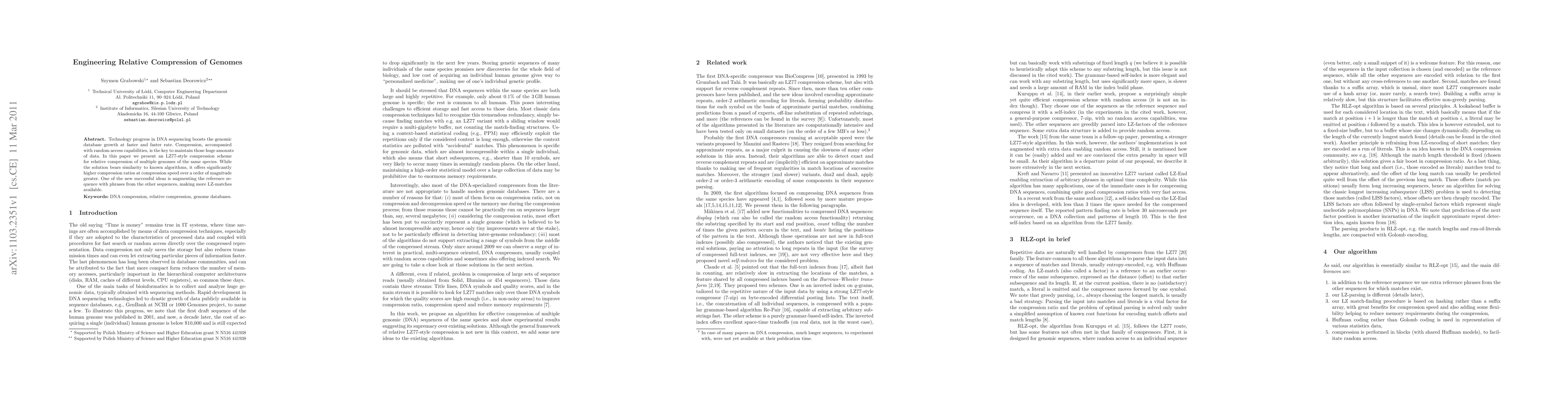Technology progress in DNA sequencing boosts the genomic database growth at faster and faster rate. Compression, accompanied with random access capabilities, is the key to maintain those huge amounts of data. In this paper we present an LZ77-style compression scheme for relative compression of multiple genomes of the same species. While the solution bears similarity to known algorithms, it offers significantly higher compression ratios at compression speed over a order of magnitude greater. One of the new successful ideas is augmenting the reference sequence with phrases from the other sequences, making more LZ-matches available.