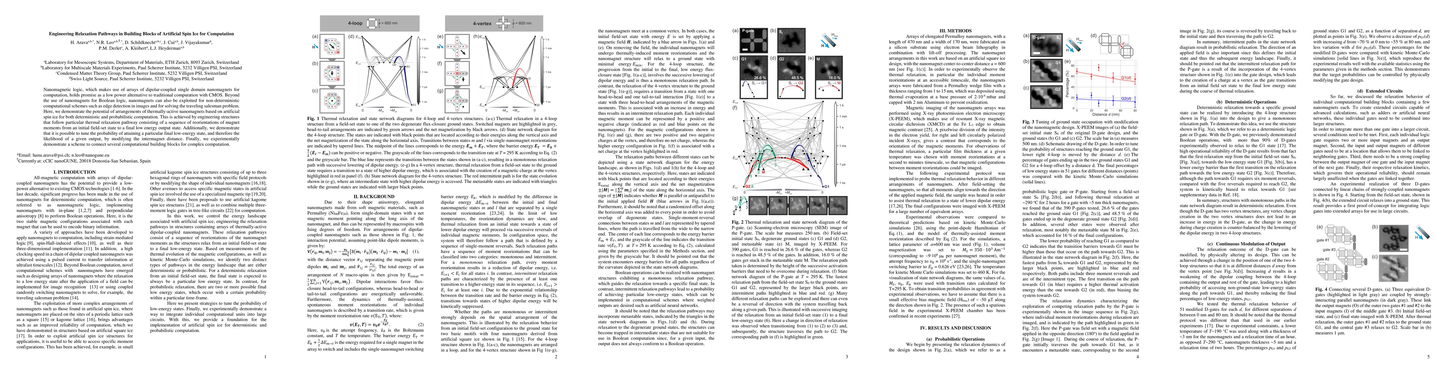 This paper explores the use of nanomagnetic logic based on artificial spin ice for both deterministic and probabilistic computation, demonstrating engineered relaxation pathways that control the reorientation of nanomagnets to achieve low-energy output states. The study also shows how intermagnet distance can be tuned to adjust the probability of specific outcomes, and presents a method to connect multiple computational units for complex tasks.