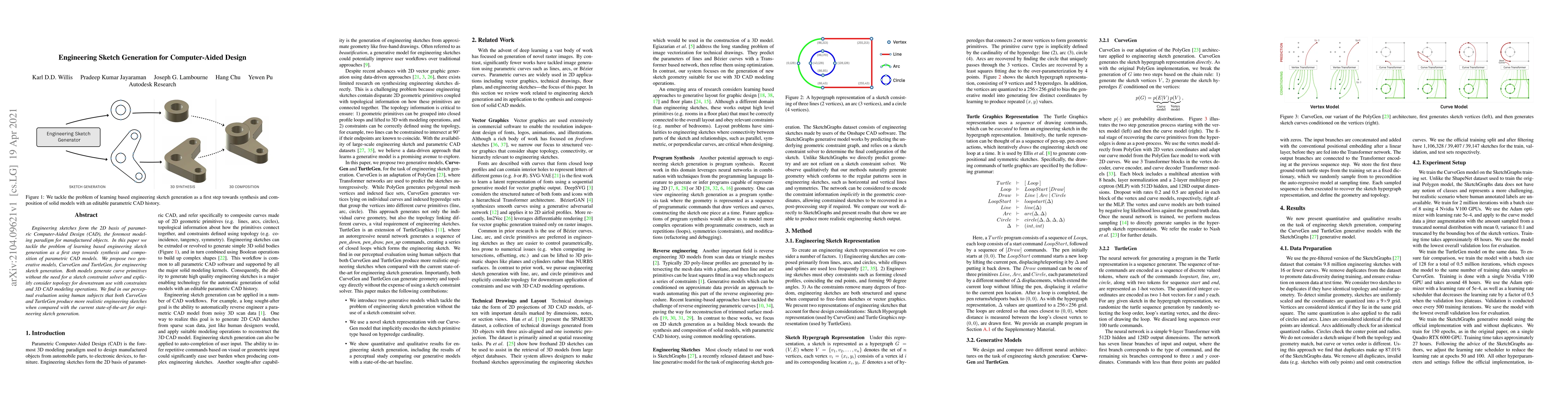 Engineering sketches form the 2D basis of parametric Computer-Aided Design (CAD), the foremost modeling paradigm for manufactured objects. In this paper we tackle the problem of learning based engineering sketch generation as a first step towards synthesis and composition of parametric CAD models. We propose two generative models, CurveGen and TurtleGen, for engineering sketch generation. Both models generate curve primitives without the need for a sketch constraint solver and explicitly consider topology for downstream use with constraints and 3D CAD modeling operations. We find in our perceptual evaluation using human subjects that both CurveGen and TurtleGen produce more realistic engineering sketches when compared with the current state-of-the-art for engineering sketch generation.