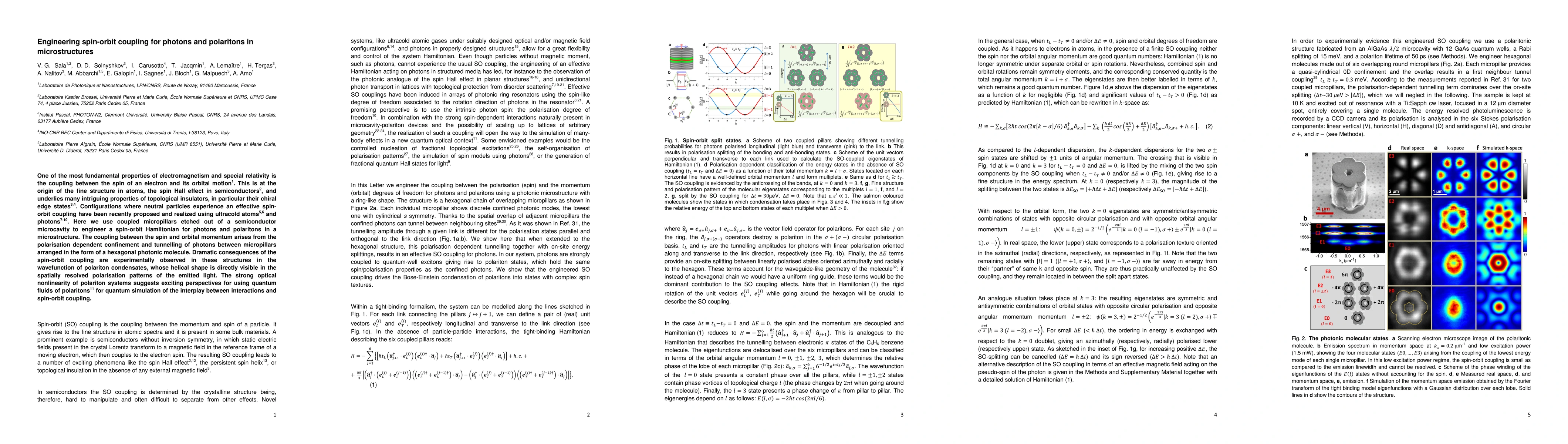One of the most fundamental properties of electromagnetism and special relativity is the coupling between the spin of an electron and its orbital motion. This is at the origin of the fine structure in atoms, the spin Hall effect in semiconductors, and underlies many intriguing properties of topological insulators, in particular their chiral edge states. Configurations where neutral particles experience an effective spin-orbit coupling have been recently proposed and realized using ultracold atoms and photons. Here we use coupled micropillars etched out of a semiconductor microcavity to engineer a spin-orbit Hamiltonian for photons and polaritons in a microstructure. The coupling between the spin and orbital momentum arises from the polarisation dependent confinement and tunnelling of photons between micropillars arranged in the form of a hexagonal photonic molecule. Dramatic consequences of the spin-orbit coupling are experimentally observed in these structures in the wavefunction of polariton condensates, whose helical shape is directly visible in the spatially resolved polarisation patterns of the emitted light. The strong optical nonlinearity of polariton systems suggests exciting perspectives for using quantum fluids of polaritons11 for quantum simulation of the interplay between interactions and spin-orbit coupling.