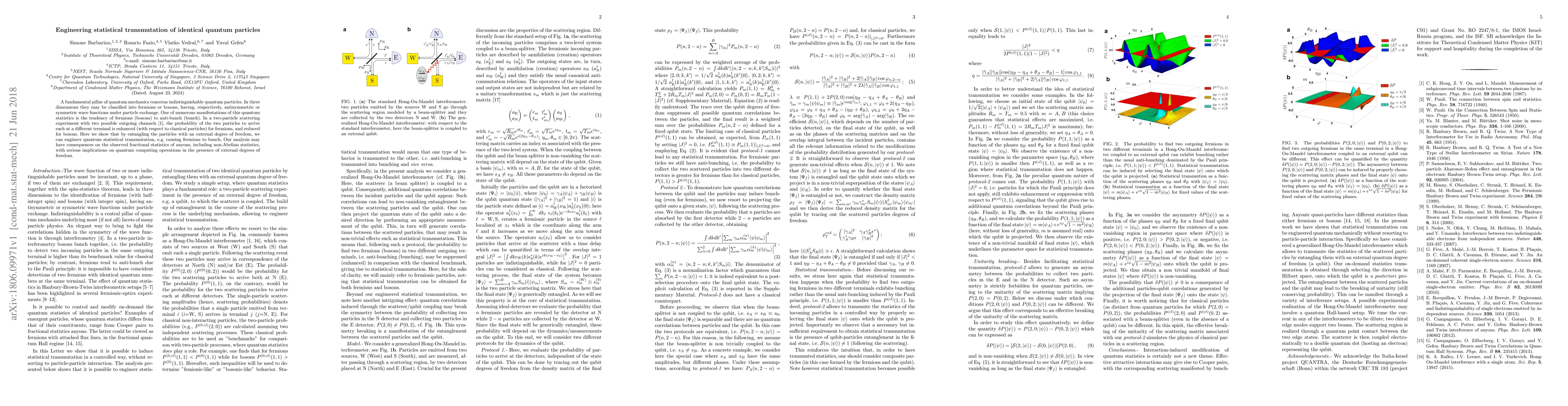 This paper demonstrates how quantum statistical transmutation can be engineered by entangling identical quantum particles with an external degree of freedom, effectively causing fermions to bunch instead of anti-bunching. This has significant implications for understanding fractional statistics of anyons and quantum computing operations.
