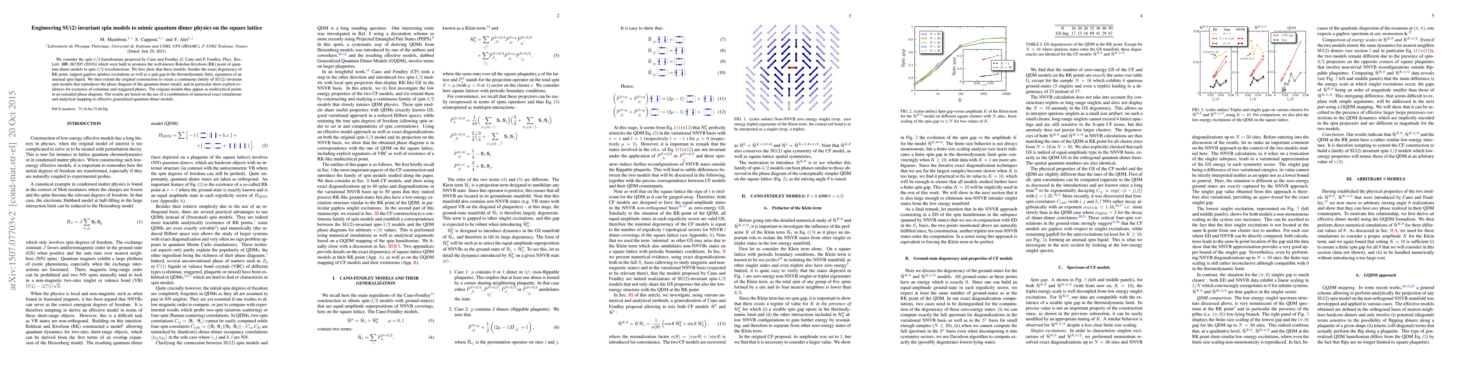 We consider the spin-1/2 hamiltonians proposed by Cano and Fendley [J. Cano and P. Fendley, Phys. Rev. Lett. 105, 067205 (2010)] which were built to promote the well-known Rokshar-Kivelson (RK) point of quantum dimer models to spin-1/2 wavefunctions. We first show that these models, besides the exact degeneracy of RK point, support gapless spinless excitations as well as a spin gap in the thermodynamic limit, signatures of an unusual spin liquid. We then extend the original construction to create a continuous family of SU(2) invariant spin models that reproduces the phase diagram of the quantum dimer model, and in particular show explicit evidences for existence of columnar and staggered phases. The original models thus appear as multicritical points in an extended phase diagram. Our results are based on the use of a combination of numerical exact simulations and analytical mapping to effective generalized quantum dimer models.