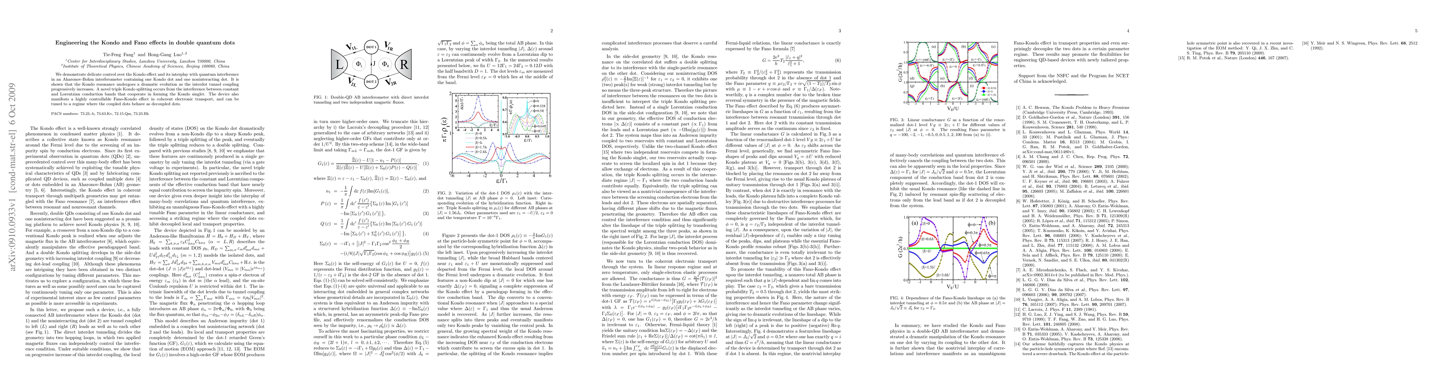 This paper demonstrates control over the Kondo effect and its interaction with quantum interference in a double quantum dot system, showing a dramatic evolution of the Kondo resonance with increased interdot coupling and a novel triple Kondo splitting due to interference effects. The device exhibits a tunable Fano-Kondo effect and can be switched between coupled and decoupled dot regimes.