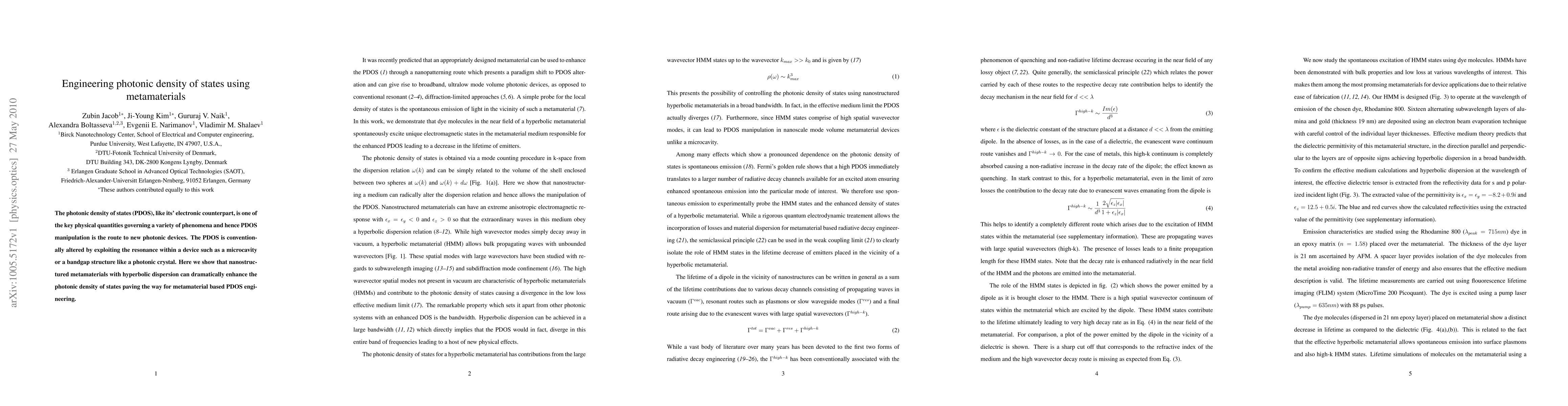 This paper demonstrates that nanostructured metamaterials with hyperbolic dispersion can significantly enhance the photonic density of states, offering a new approach to PDOS engineering for advanced photonic devices. Traditional methods rely on microcavities or photonic crystals, but metamaterials provide a more versatile route.