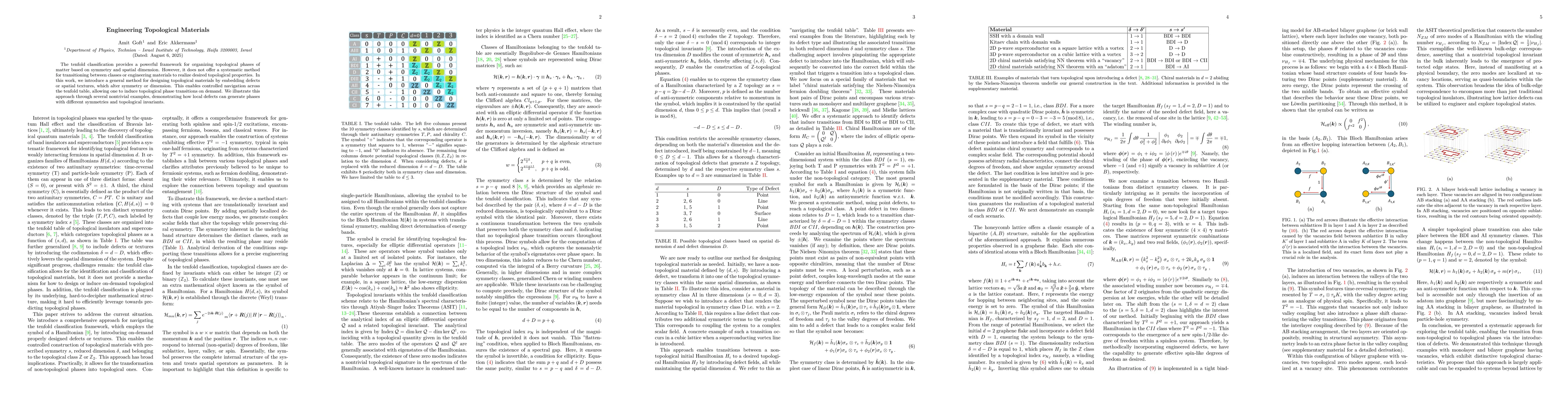 The paper introduces a method for designing topological materials by embedding defects or spatial textures, enabling controlled navigation across the tenfold table of topological phases.