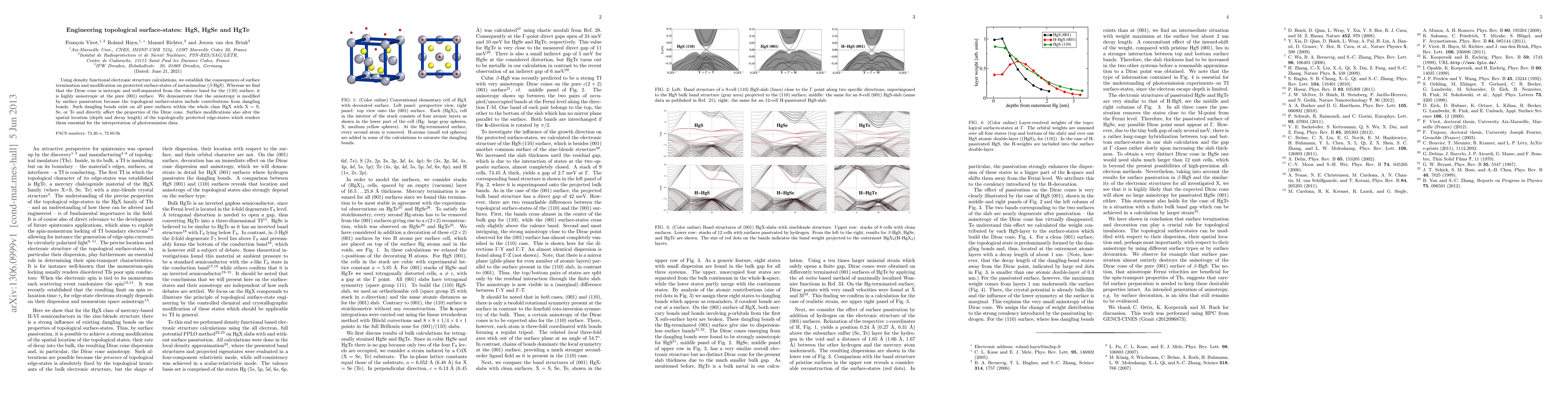 Using density functional electronic structure calculations, we establish the consequences of surface termination and modification on protected surface-states of metacinnabar (beta-HgS). Whereas we find that the Dirac cone is isotropic and well-separated from the valence band for the (110) surface, it is highly anisotropic at the pure (001) surface. We demonstrate that the anisotropy is modified by surface passivation because the topological surface-states include contributions from dangling bonds. Such dangling bonds exist on all pure surfaces within the whole class HgX with X = S, Se, or Te and directly affect the properties of the Dirac cone. Surface modifications also alter the spatial location (depth and decay length) of the topologically protected edge-states which renders them essential for the interpretation of photoemission data.