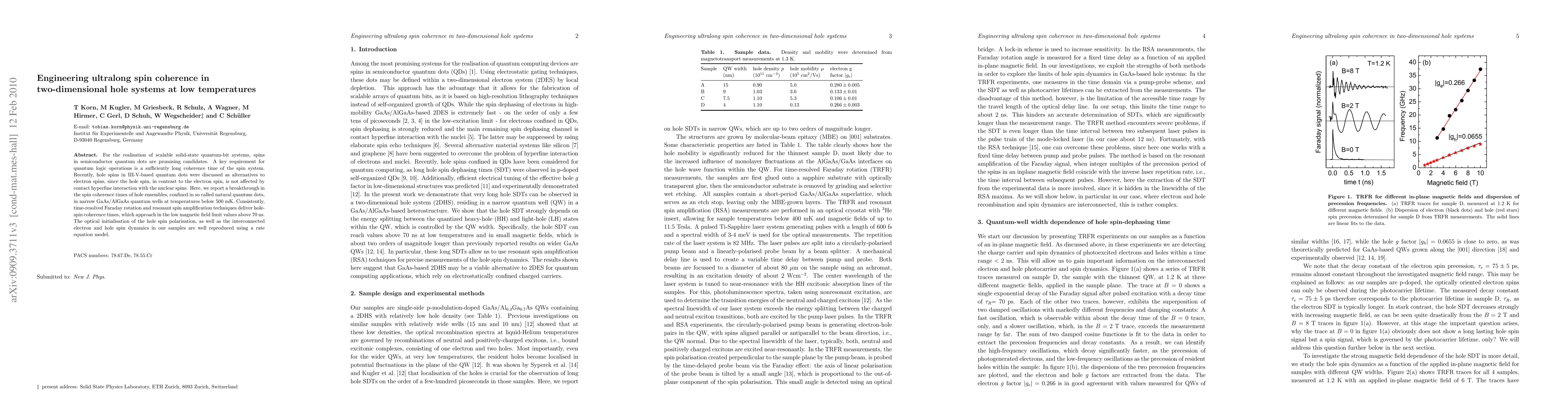 This paper reports a significant enhancement in the spin coherence times of hole ensembles in two-dimensional quantum wells at ultralow temperatures, achieving coherence times exceeding 70 ns. The study utilizes natural quantum dots in GaAs/AlGaAs structures and demonstrates that hole spins offer superior coherence compared to electron spins due to reduced hyperfine interactions.