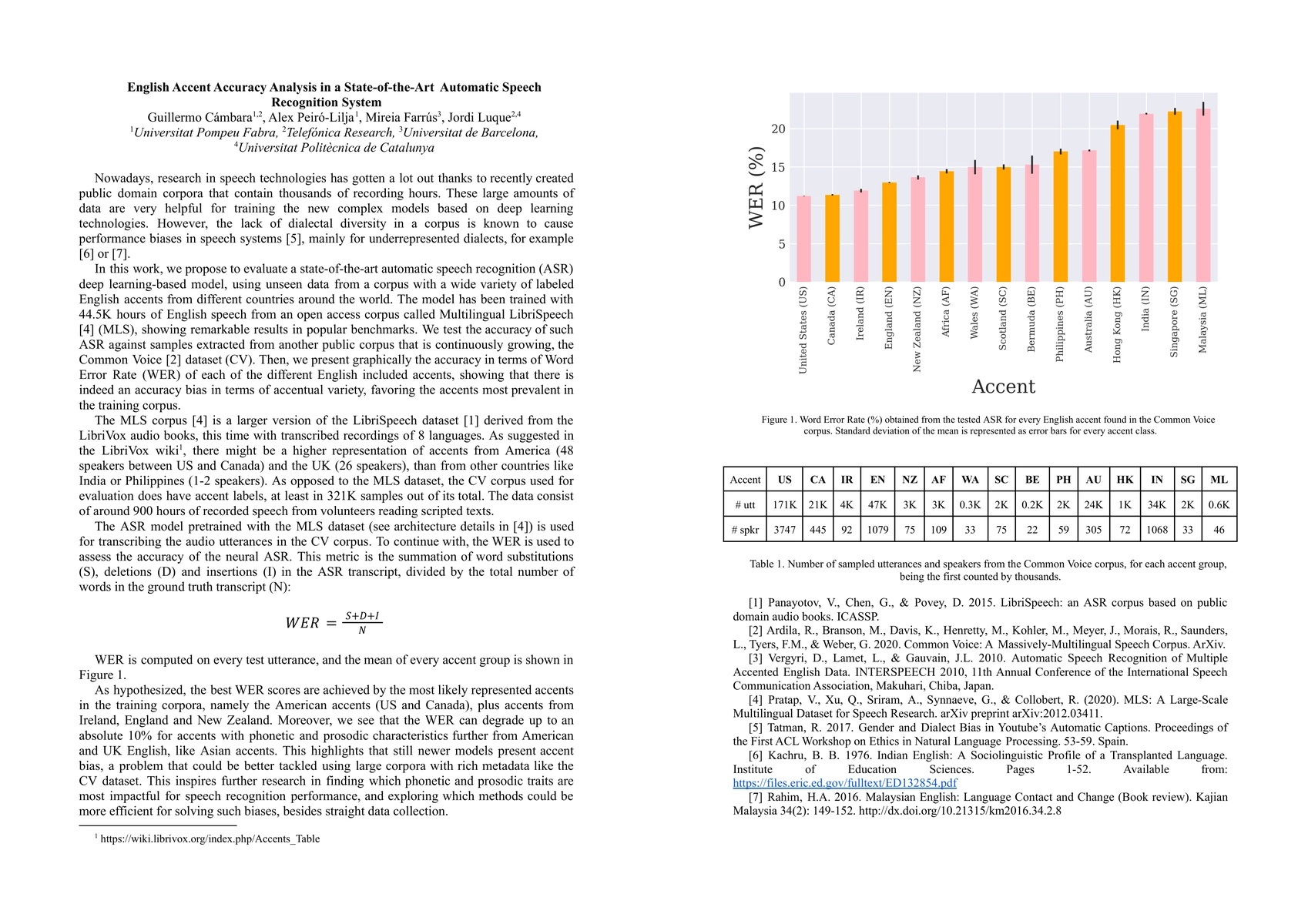 Nowadays, research in speech technologies has gotten a lot out thanks to recently created public domain corpora that contain thousands of recording hours. These large amounts of data are very helpful for training the new complex models based on deep learning technologies. However, the lack of dialectal diversity in a corpus is known to cause performance biases in speech systems, mainly for underrepresented dialects. In this work, we propose to evaluate a state-of-the-art automatic speech recognition (ASR) deep learning-based model, using unseen data from a corpus with a wide variety of labeled English accents from different countries around the world. The model has been trained with 44.5K hours of English speech from an open access corpus called Multilingual LibriSpeech, showing remarkable results in popular benchmarks. We test the accuracy of such ASR against samples extracted from another public corpus that is continuously growing, the Common Voice dataset. Then, we present graphically the accuracy in terms of Word Error Rate of each of the different English included accents, showing that there is indeed an accuracy bias in terms of accentual variety, favoring the accents most prevalent in the training corpus.