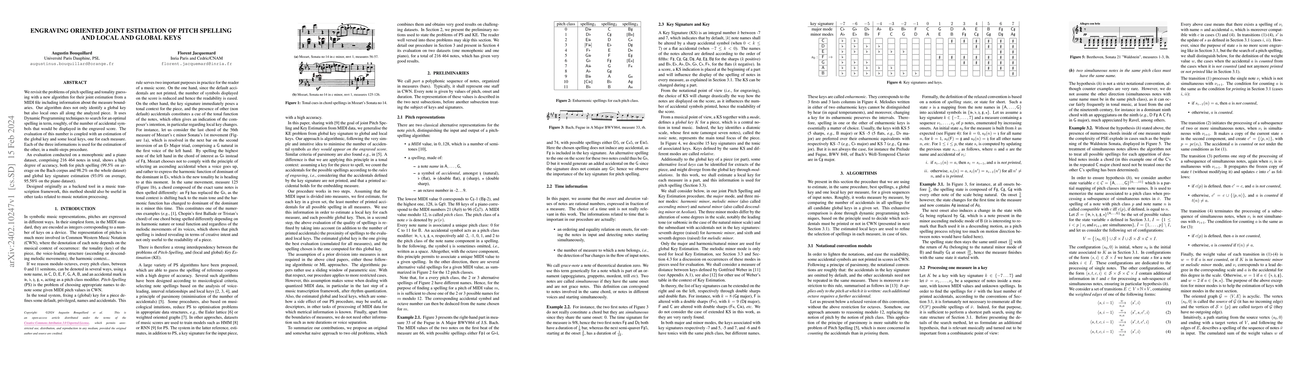 This paper proposes a joint estimation algorithm for pitch spelling and tonality guessing from MIDI files, identifying both global and local keys using Dynamic Programming. Evaluations on a large dataset show high accuracy in pitch spelling and global key signature estimation.