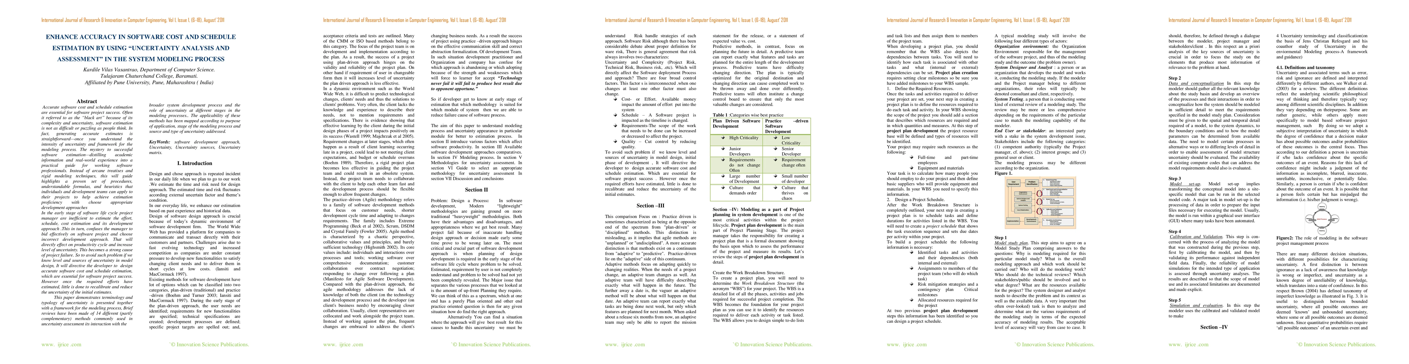 Accurate software cost and schedule estimation are essential for software project success. Often it referred to as the "black art" because of its complexity and uncertainty, software estimation is not as difficult or puzzling as people think. In fact, generating accurate estimates is straightforward-once you understand the intensity of uncertainty and framework for the modeling process. The mystery to successful software estimation-distilling academic information and real-world experience into a practical guide for working software professionals. Instead of arcane treatises and rigid modeling techniques, this will guide highlights a proven set of procedures, understandable formulas, and heuristics that individuals and development teams can apply to their projects to help achieve estimation proficiency with choose appropriate development approaches In the early stage of software life cycle project manager are inefficient to estimate the effort, schedule, cost estimation and its development approach .This in turn, confuses the manager to bid effectively on software project and choose incorrect development approach. That will directly effect on productivity cycle and increase level of uncertainty. This becomes a strong cause of project failure. So to avoid such problem if we know level and sources of uncertainty in model design, It will directive the developer to design accurate software cost and schedule estimation, which are essential for software project success. However once the required efforts have estimated, little is done to recalibrate and reduce the uncertainty of the initial estimates.