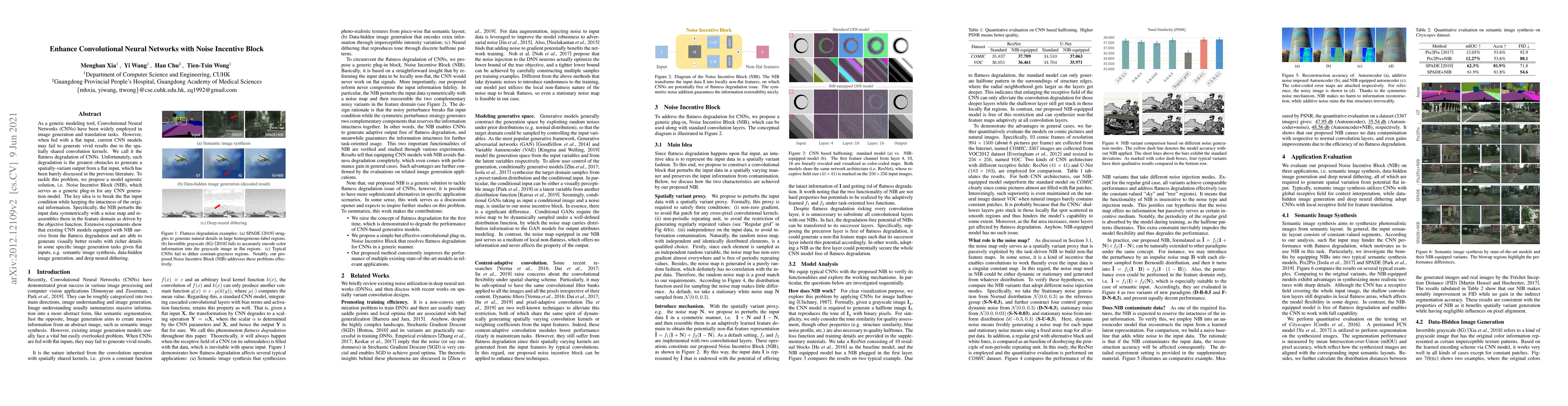 This research proposes a Noise Incentive Block (NIB) to enhance Convolutional Neural Networks (CNNs) for image generation tasks, addressing the issue of flatness degradation in CNNs when dealing with flat inputs. The NIB perturbs input data symmetrically with a noise map to generate richer, more detailed outputs, improving performance in tasks like semantic image synthesis. For more details, please refer to the original paper.