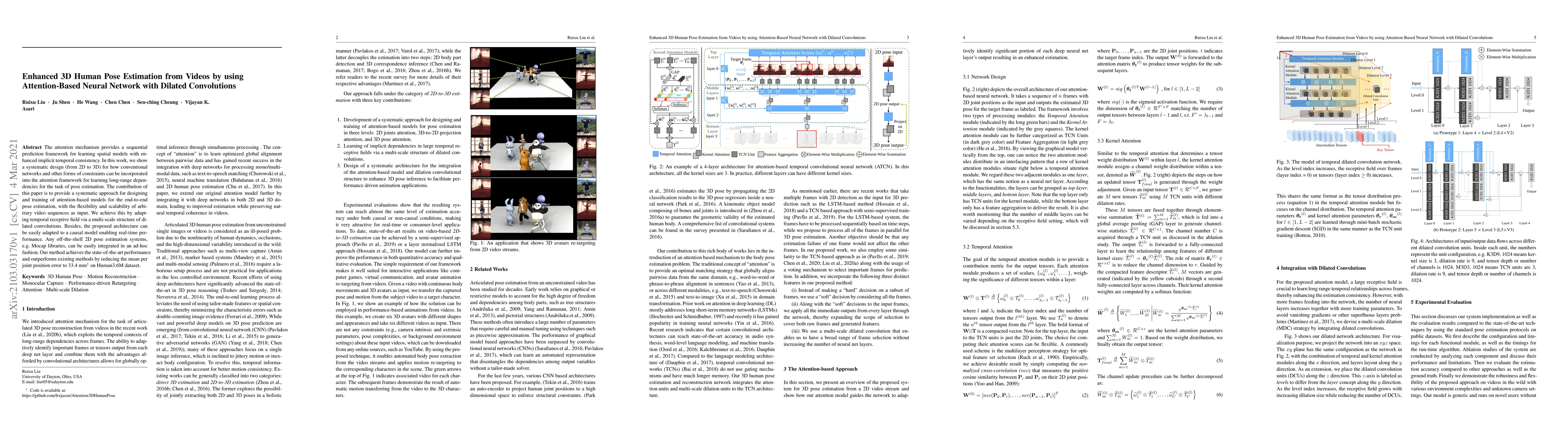 The attention mechanism provides a sequential prediction framework for learning spatial models with enhanced implicit temporal consistency. In this work, we show a systematic design (from 2D to 3D) for how conventional networks and other forms of constraints can be incorporated into the attention framework for learning long-range dependencies for the task of pose estimation. The contribution of this paper is to provide a systematic approach for designing and training of attention-based models for the end-to-end pose estimation, with the flexibility and scalability of arbitrary video sequences as input. We achieve this by adapting temporal receptive field via a multi-scale structure of dilated convolutions. Besides, the proposed architecture can be easily adapted to a causal model enabling real-time performance. Any off-the-shelf 2D pose estimation systems, e.g. Mocap libraries, can be easily integrated in an ad-hoc fashion. Our method achieves the state-of-the-art performance and outperforms existing methods by reducing the mean per joint position error to 33.4 mm on Human3.6M dataset.