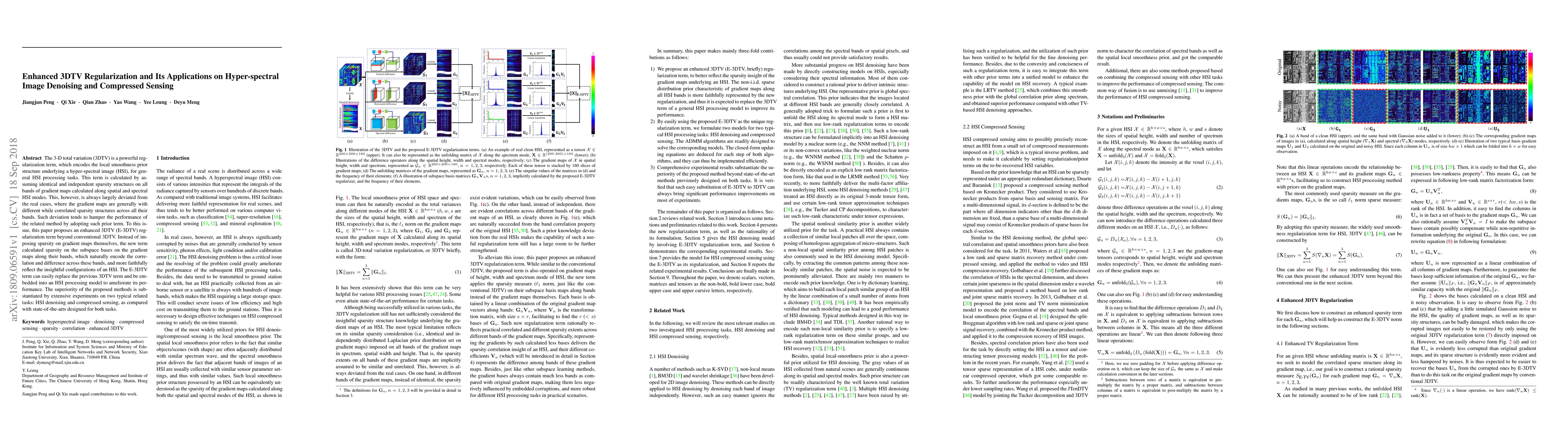 This paper proposes an enhanced 3DTV regularization term (E-3DTV) to better reflect the correlated sparsity structures across bands of hyper-spectral images, improving performance over conventional 3DTV. The E-3DTV term is shown to outperform existing methods in hyper-spectral image denoising and compressed sensing tasks.
