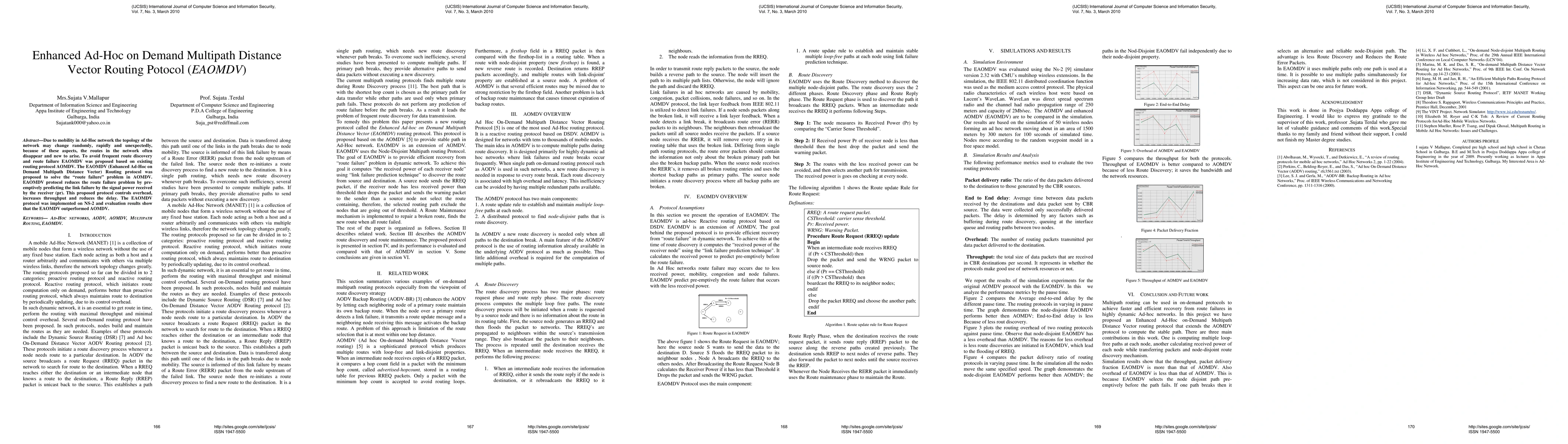 The Enhanced Ad-Hoc on Demand Multipath Distance Vector (EAOMDV) Routing protocol aims to mitigate route failures in mobile Ad-Hoc networks by preemptively predicting link failures using received signal strength. EAOMDV outperforms the existing AOMDV protocol by controlling overhead, increasing throughput, and reducing delay, as demonstrated by NS-2 simulations.
