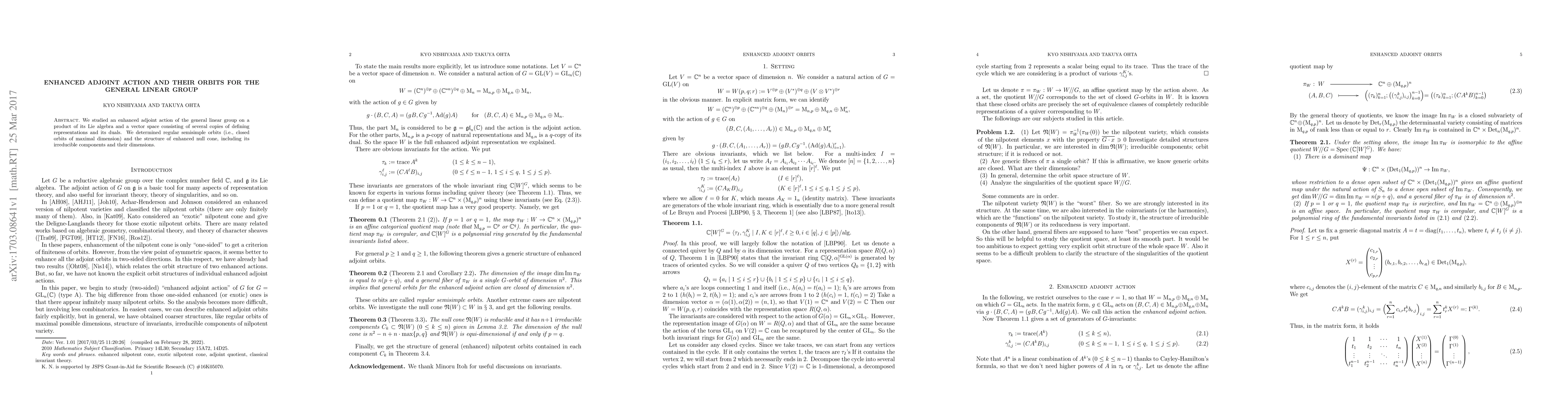 This paper investigates the enhanced adjoint action of the general linear group on a product of its Lie algebra and vector spaces of defining representations and duals. It identifies regular semisimple orbits and analyzes the structure of the enhanced null cone, detailing its irreducible components and dimensions.