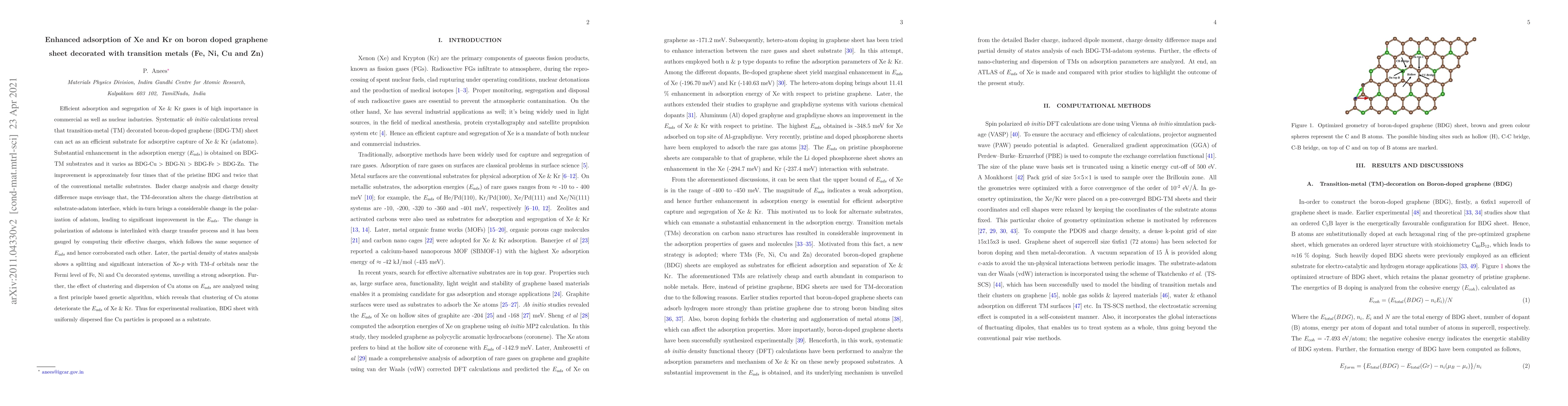 Researchers found that decorating a graphene sheet with certain transition metals significantly improves its ability to capture Xenon and Krypton gases, with copper decoration providing the greatest enhancement.