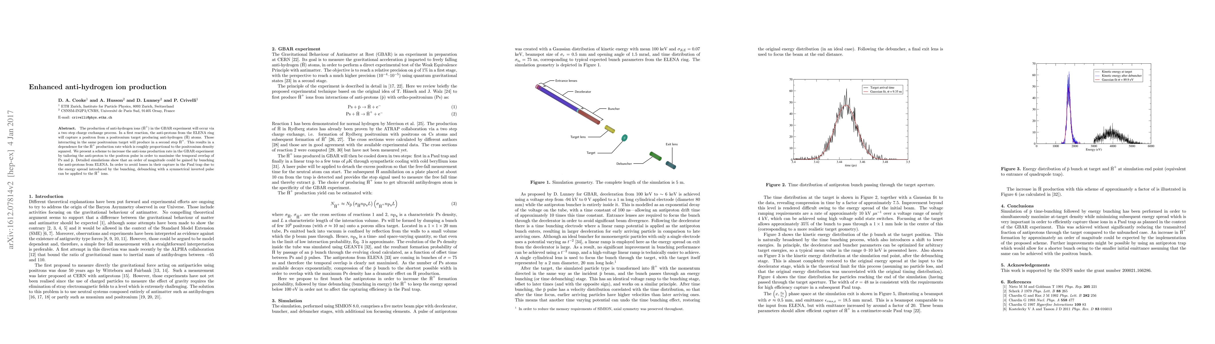 Researchers propose a method to increase anti-hydrogen ion production in the GBAR experiment by synchronizing anti-proton pulses with positronium targets, potentially doubling production rates. This approach also involves debunching anti-hydrogen ions to prevent energy losses.