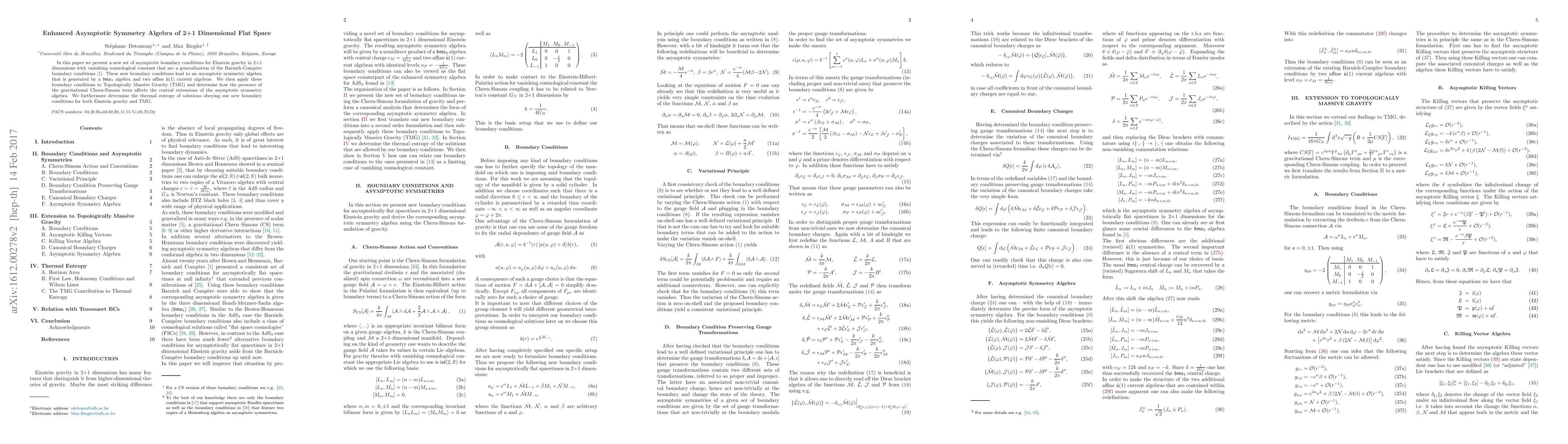 This paper introduces novel asymptotic boundary conditions for 2+1-dimensional Einstein gravity, leading to an enhanced symmetry algebra generated by $\mathfrak{bms}_3$ and two affine $\hat{\mathfrak{u}}(1)$ algebras. It examines the impact of the gravitational Chern-Simons term in Topologically Massive Gravity on these symmetries and computes the thermal entropy of solutions under these new conditions.