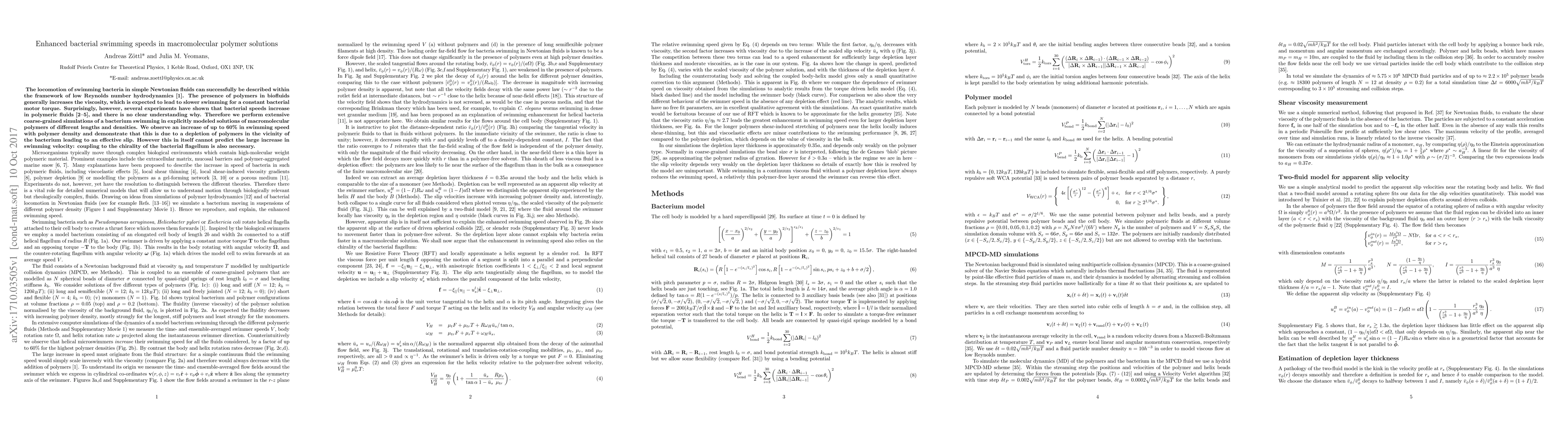 A theoretical model was developed to describe the motion of a rotating rod in a fluid with polymer depletion.
