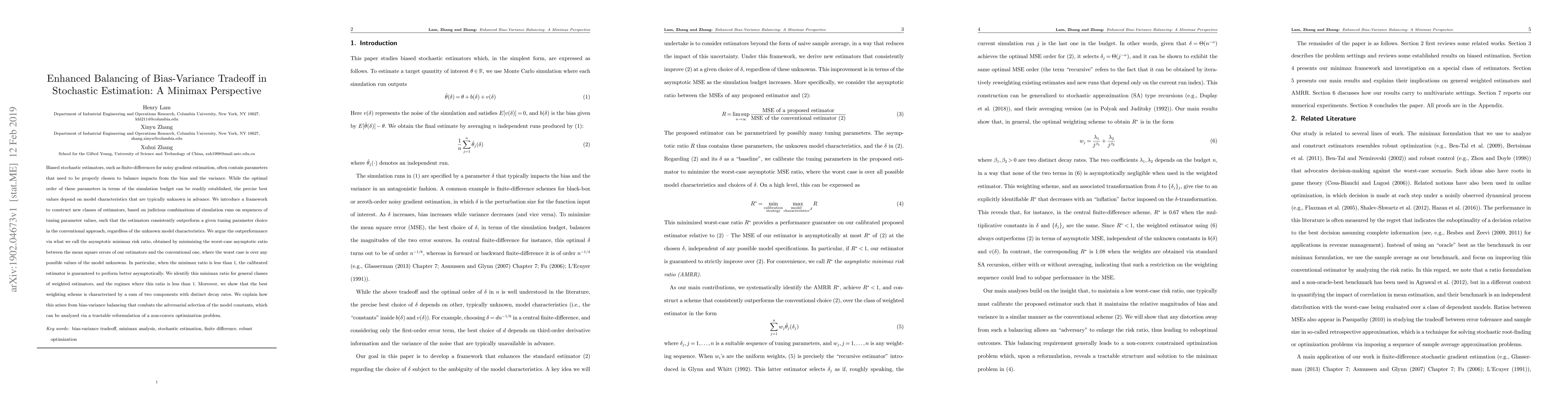 Biased stochastic estimators, such as finite-differences for noisy gradient estimation, often contain parameters that need to be properly chosen to balance impacts from the bias and the variance. While the optimal order of these parameters in terms of the simulation budget can be readily established, the precise best values depend on model characteristics that are typically unknown in advance. We introduce a framework to construct new classes of estimators, based on judicious combinations of simulation runs on sequences of tuning parameter values, such that the estimators consistently outperform a given tuning parameter choice in the conventional approach, regardless of the unknown model characteristics. We argue the outperformance via what we call the asymptotic minimax risk ratio, obtained by minimizing the worst-case asymptotic ratio between the mean square errors of our estimators and the conventional one, where the worst case is over any possible values of the model unknowns. In particular, when the minimax ratio is less than 1, the calibrated estimator is guaranteed to perform better asymptotically. We identify this minimax ratio for general classes of weighted estimators, and the regimes where this ratio is less than 1. Moreover, we show that the best weighting scheme is characterized by a sum of two components with distinct decay rates. We explain how this arises from bias-variance balancing that combats the adversarial selection of the model constants, which can be analyzed via a tractable reformulation of a non-convex optimization problem.