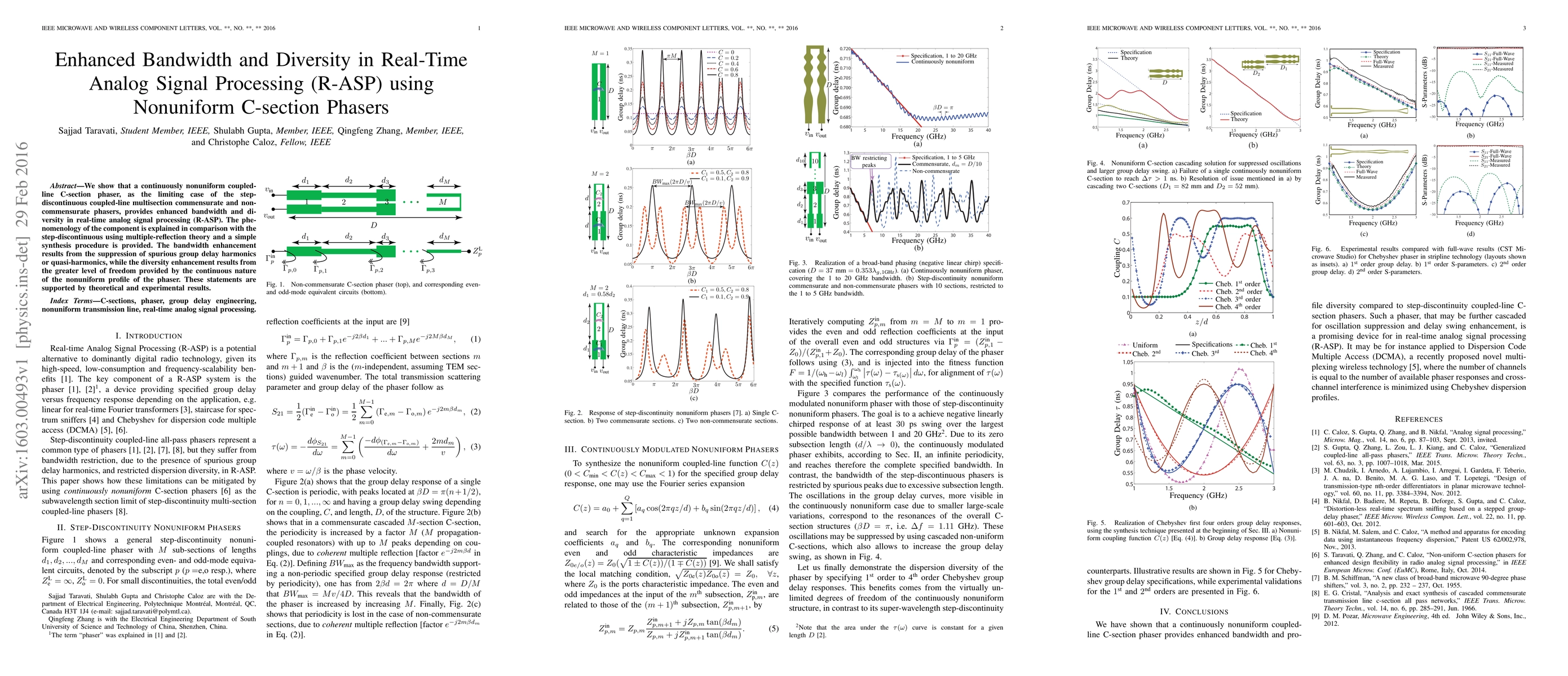 This paper demonstrates that a continuously nonuniform C-section phaser enhances bandwidth and diversity in real-time analog signal processing by suppressing spurious group delay harmonics and leveraging the continuous phase profile for greater flexibility. Theoretical and experimental results support these improvements.