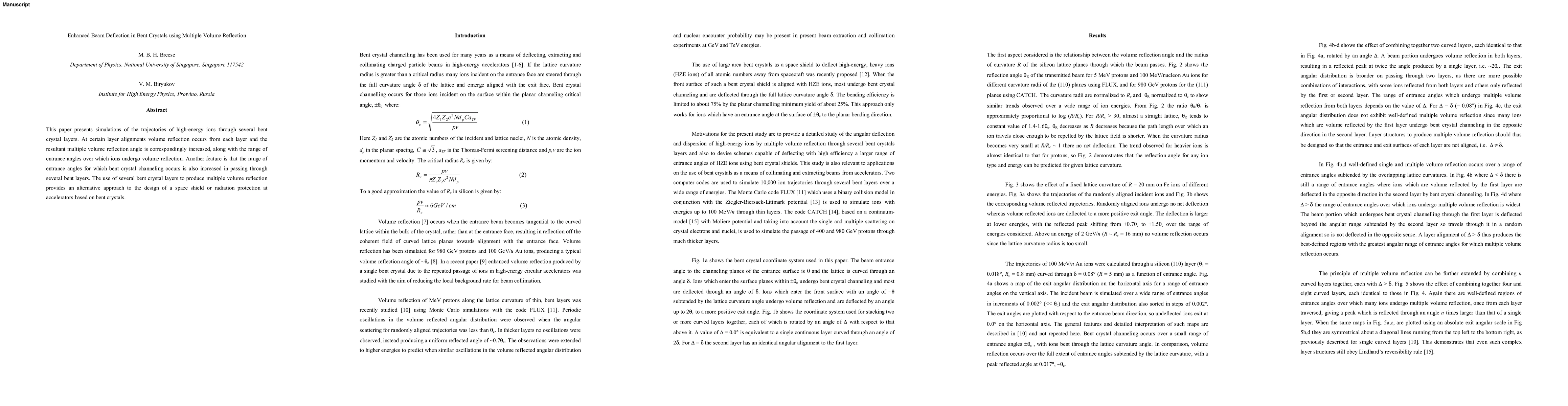 This paper simulates high-energy ion trajectories through bent crystal layers, showing that multiple volume reflection enhances beam deflection and increases the range of entrance angles for both volume reflection and channeling. This technique offers potential for advanced space shields and radiation protection in accelerators.