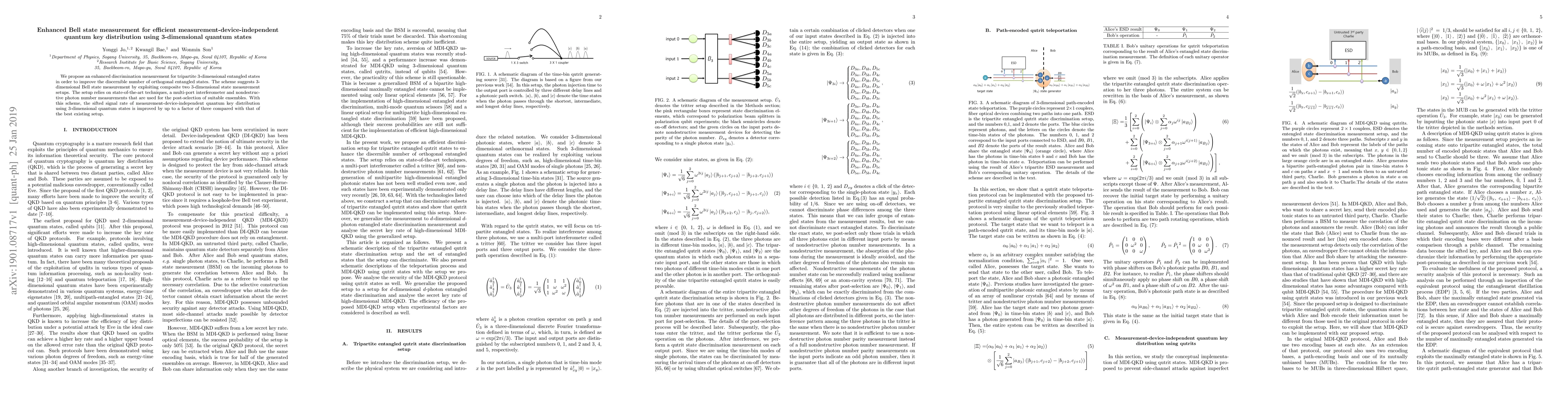 The research proposes an improved method for distinguishing entangled quantum states, using a 3D Bell state measurement setup. This enhancement increases the sifted signal rate in measurement-device-independent quantum key distribution by up to threefold, compared to current techniques.