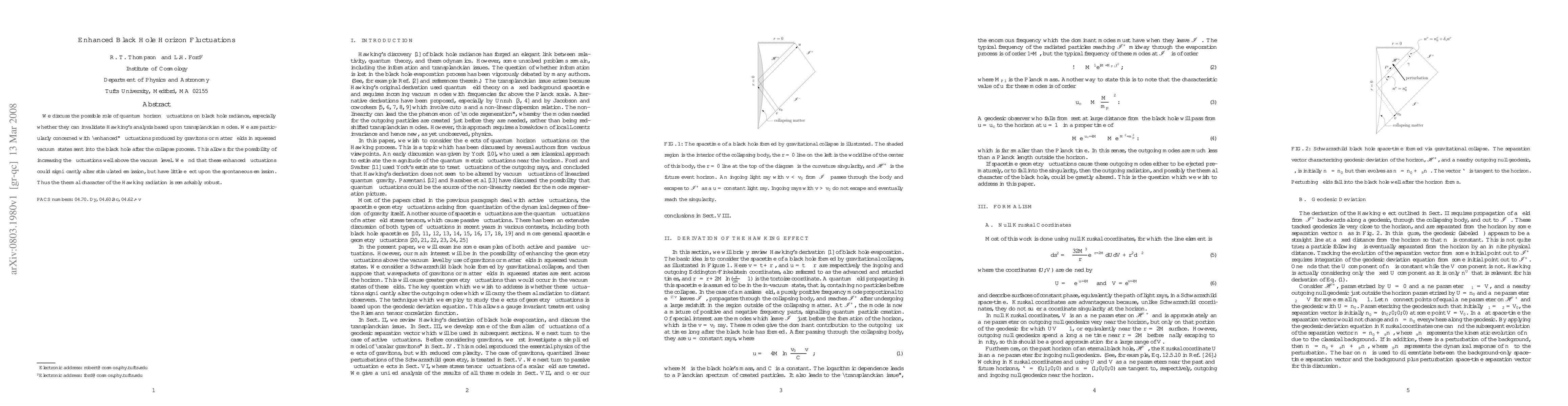 We discuss the possible role of quantum horizon fluctuations on black hole radiance, especially whether they can invalidate Hawking's analysis based upon transplanckian modes. We are particularly concerned with ``enhanced'' fluctuations produced by gravitons or matter fields in squeezed vacuum states sent into the black hole after the collapse process. This allows for the possibility of increasing the fluctuations well above the vacuum level. We find that these enhanced fluctuations could significantly alter stimulated emission but have little effect upon the spontaneous emission. Thus the thermal character of the Hawking radiation is remarkably robust.