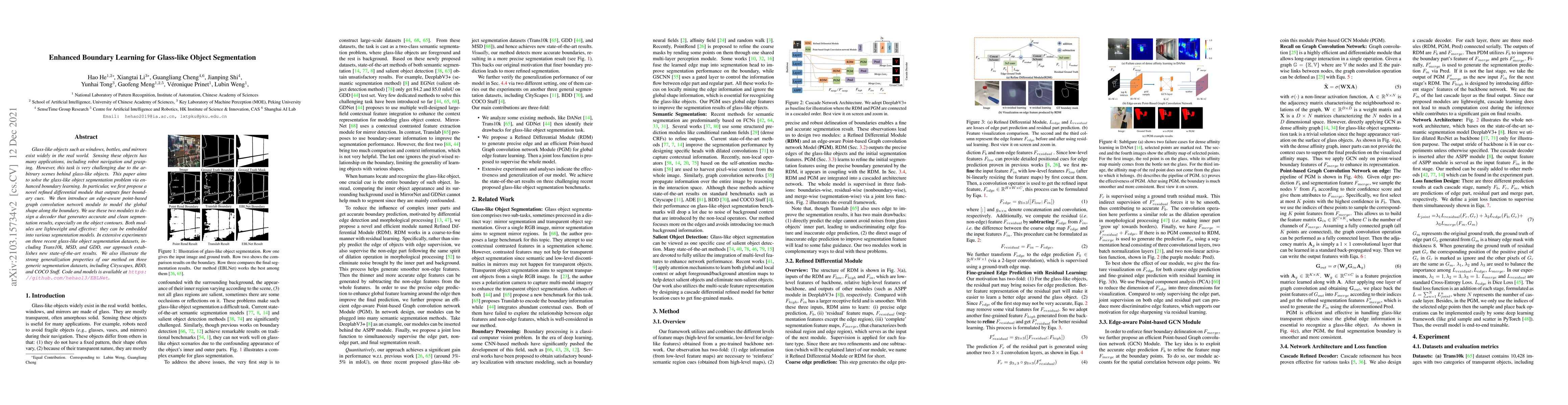 A new approach for segmenting glass-like objects, like windows and bottles, has been developed using enhanced boundary learning. It achieves state-of-the-art results on various datasets and demonstrates strong generalization properties.
